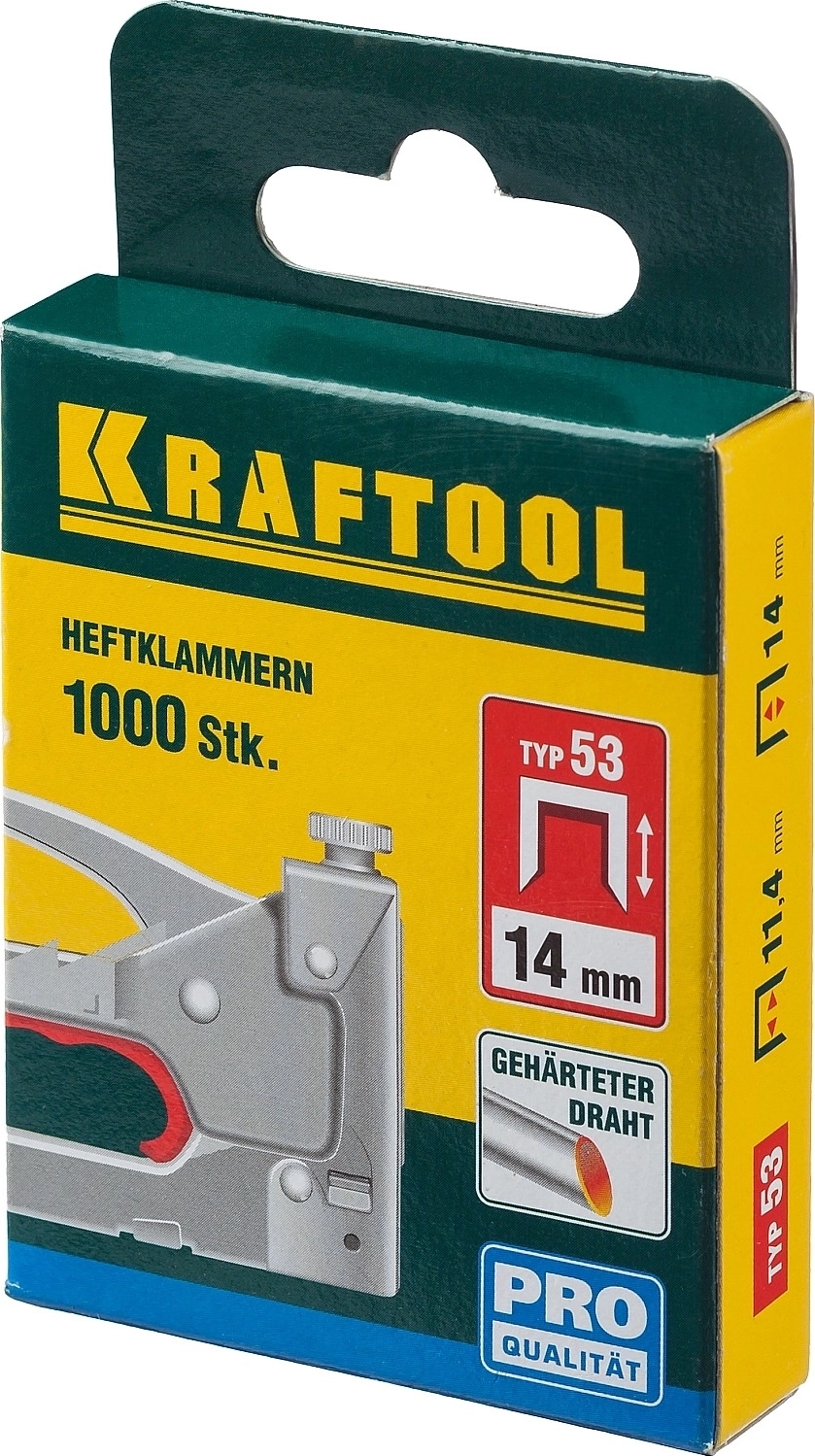 Скобы для степлера KRAFTOOL тип 53 (A/10/JT21) 14 мм, 1000 шт, калибр 23GA