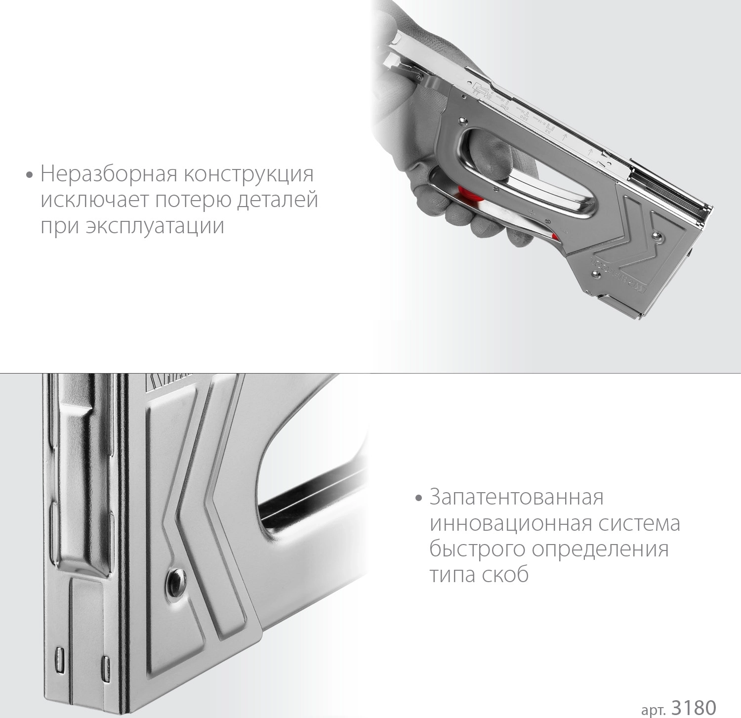 Профессиональный мощный стальной степлер с ударным механизмом рессорного типа с увеличенной мощностью, удара без отдачи, предназначен для промышленного применения при интенсивных нагрузках.