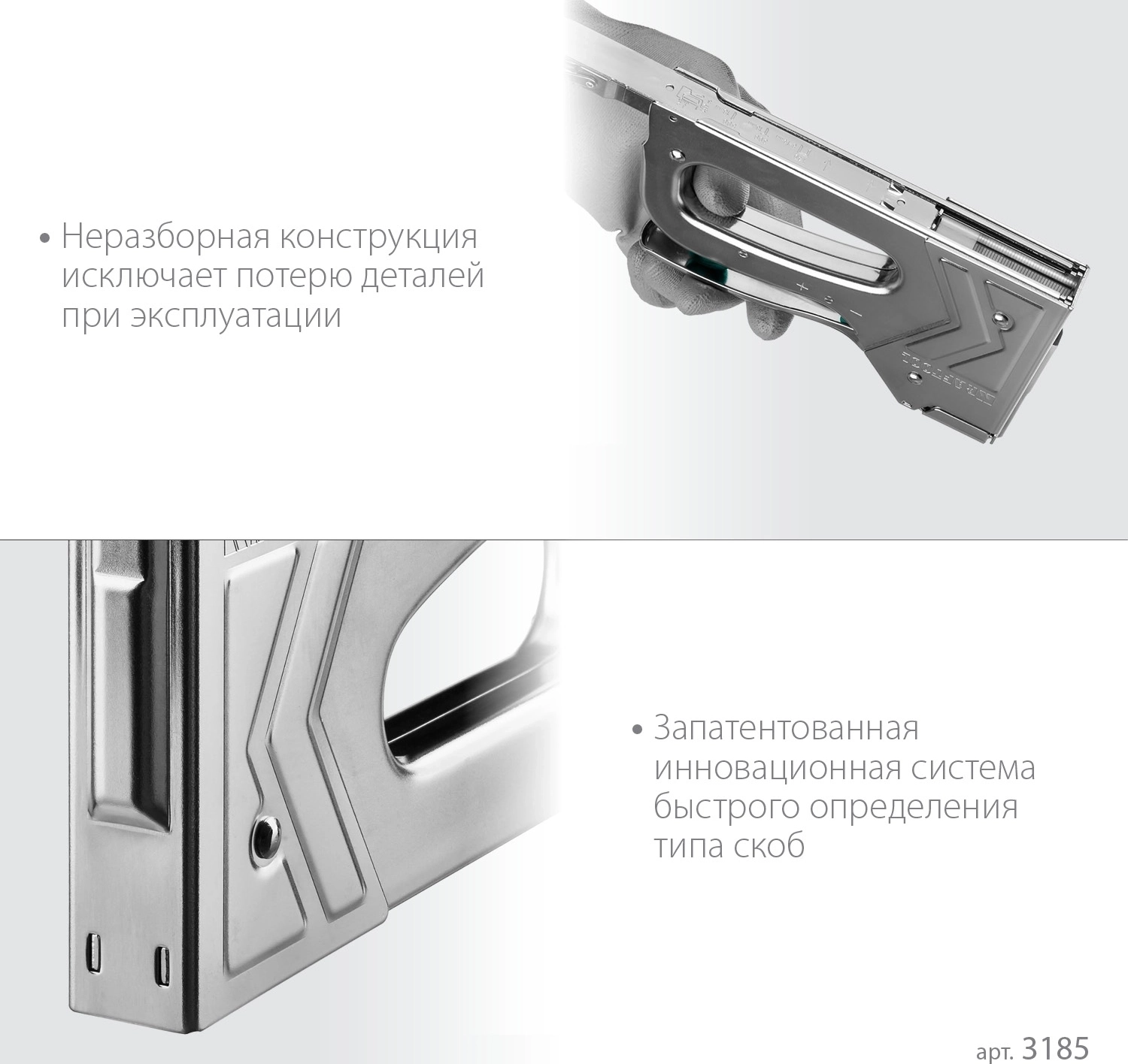 Профессиональный мощный стальной степлер с ударным механизмом рессорного типа с увеличенной мощностью, удара без отдачи, предназначен для промышленного применения при интенсивных нагрузках.