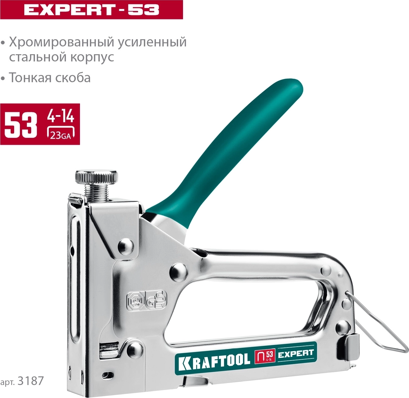 Стальной компактный степлер KRAFTOOL Expert-53, тип 53 (A/10/JT21) 23GA (4 - 14 мм)