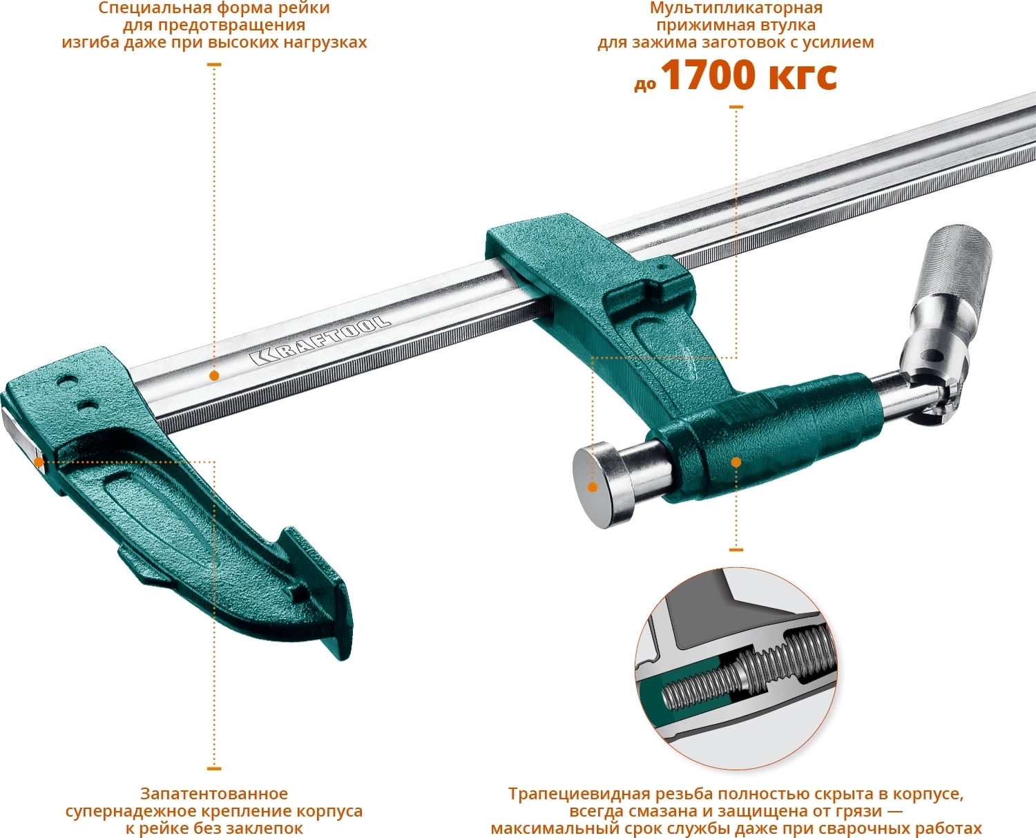 Мощная струбцина F KRAFTOOL E -60/12, 125 х 600 мм
