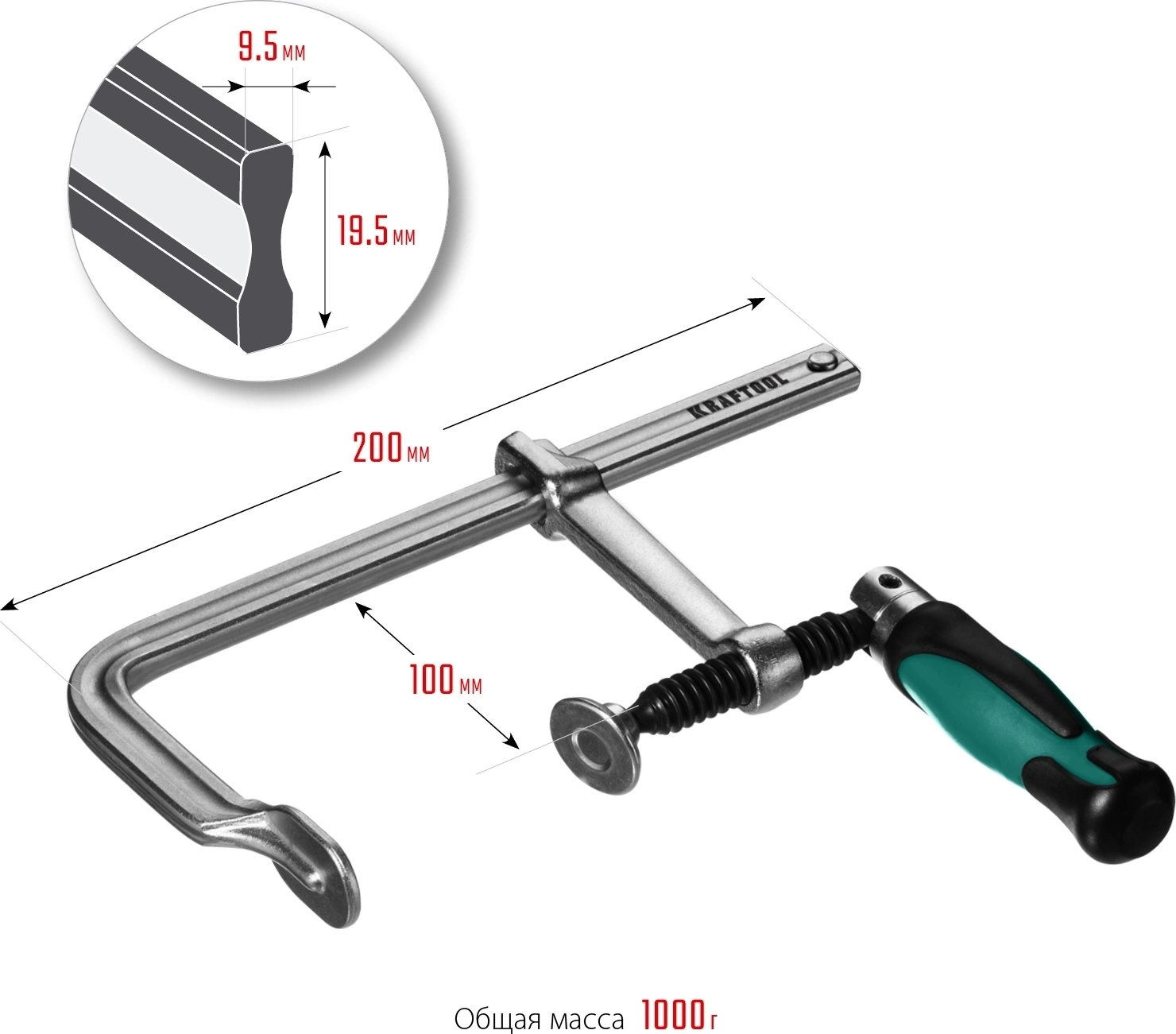 Цельнокованая струбцина F KRAFTOOL Forge FF-200/100, 100 х 200 мм