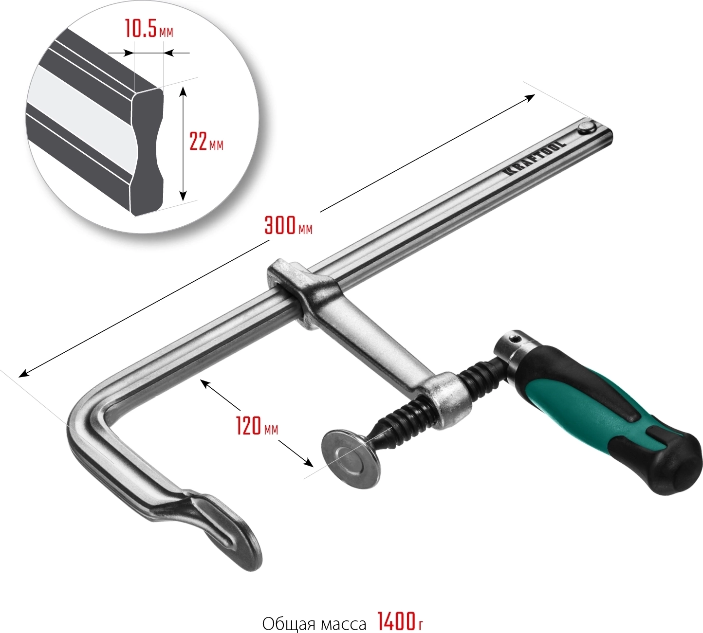 Цельнокованая струбцина F KRAFTOOL Forge FF-300/120, 120 х 300 мм