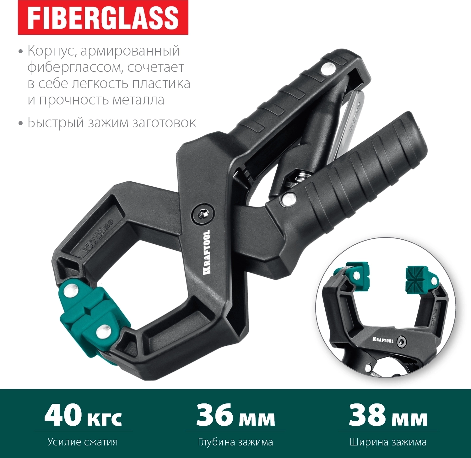 Зажимная струбцина KRAFTOOL RC-38, 38 х 38 мм
