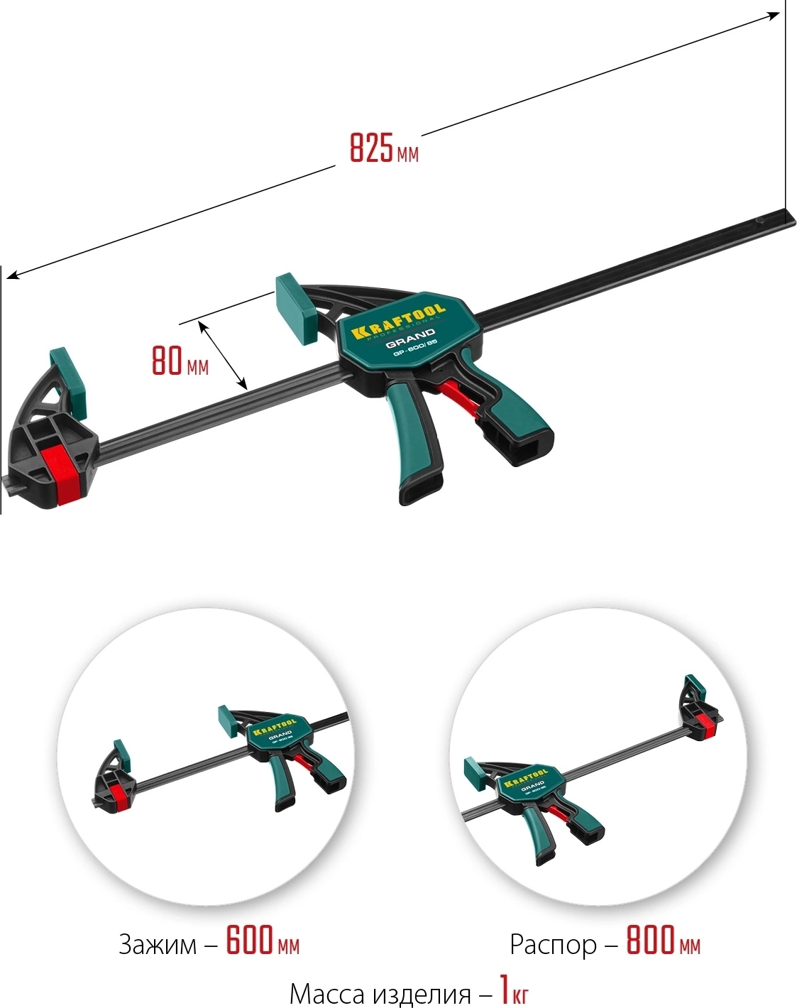 Пистолетная струбцина KRAFTOOL GP-600/85, 600 х 85 мм