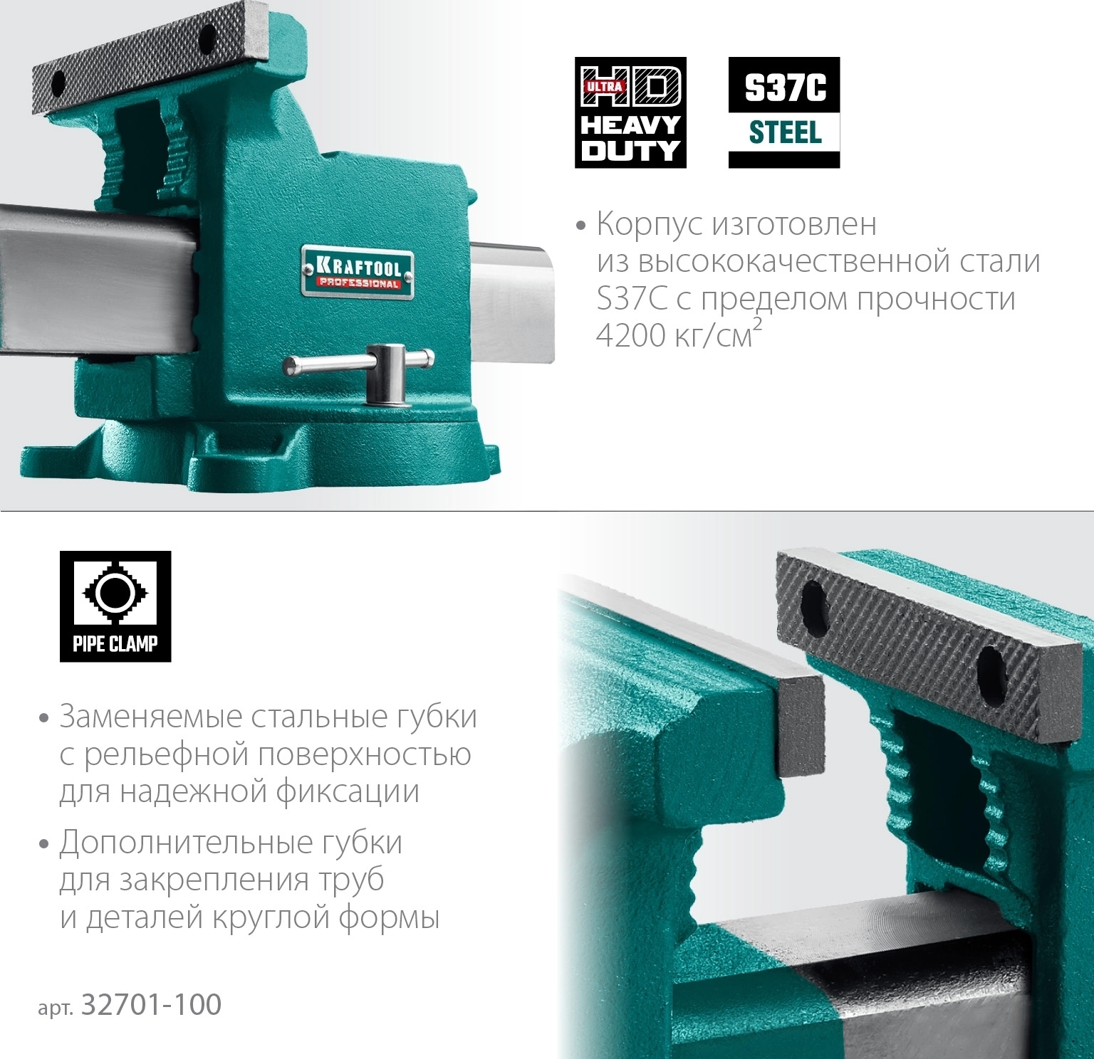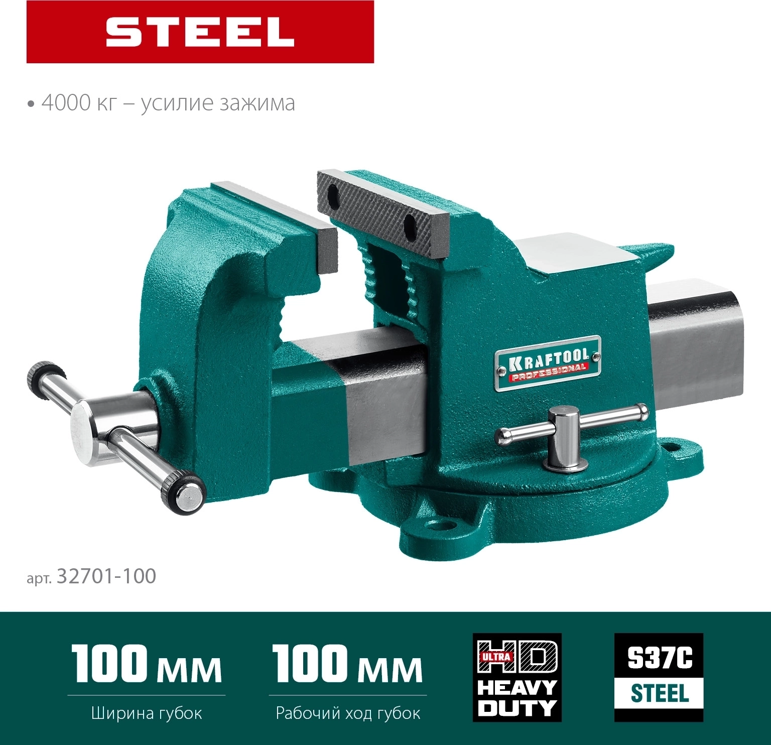 Стальные слесарные тиски KRAFTOOL STEEL, 100 мм
