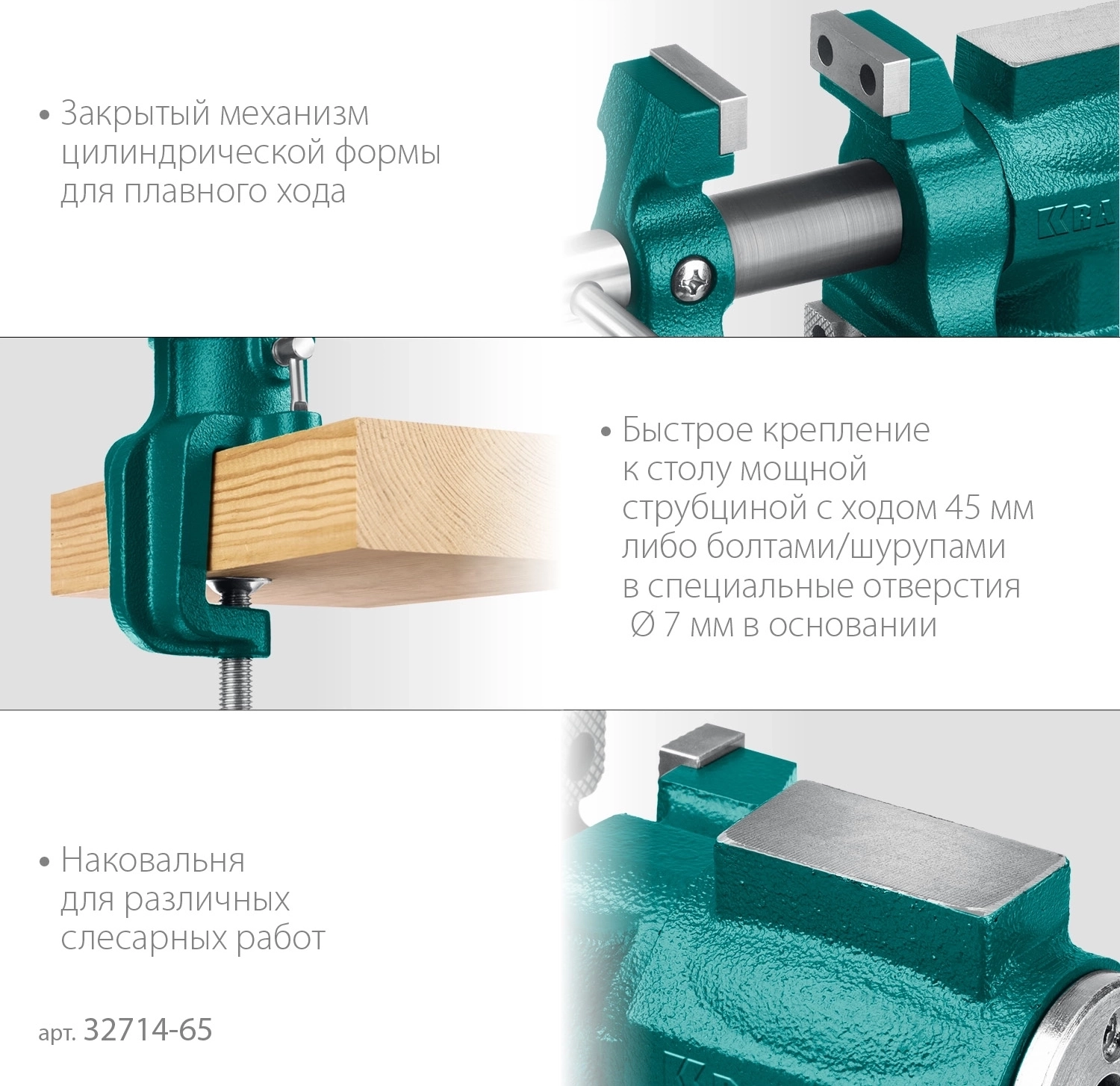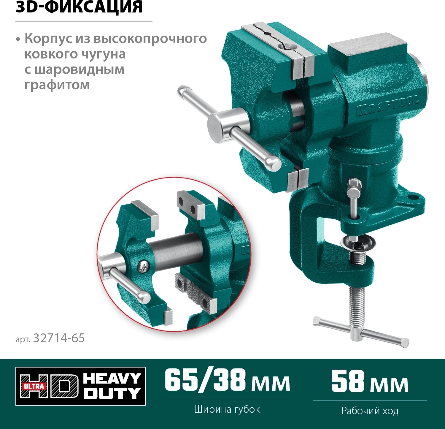 Многофункциональные настольные тиски KRAFTOOL 3D-Mini, 65/38 мм