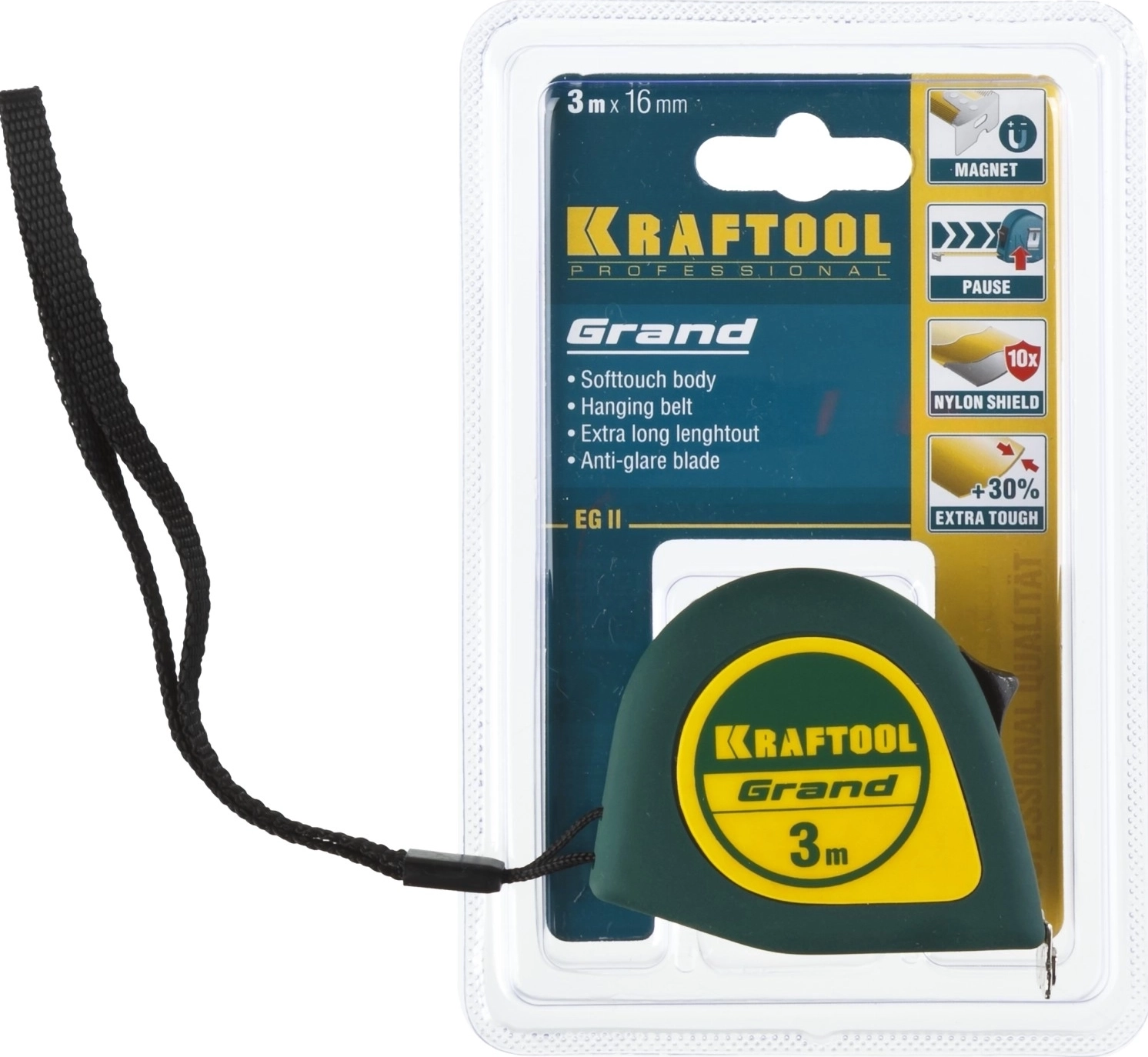 Рулетка KRAFTOOL Grand, 3 м х 16 мм