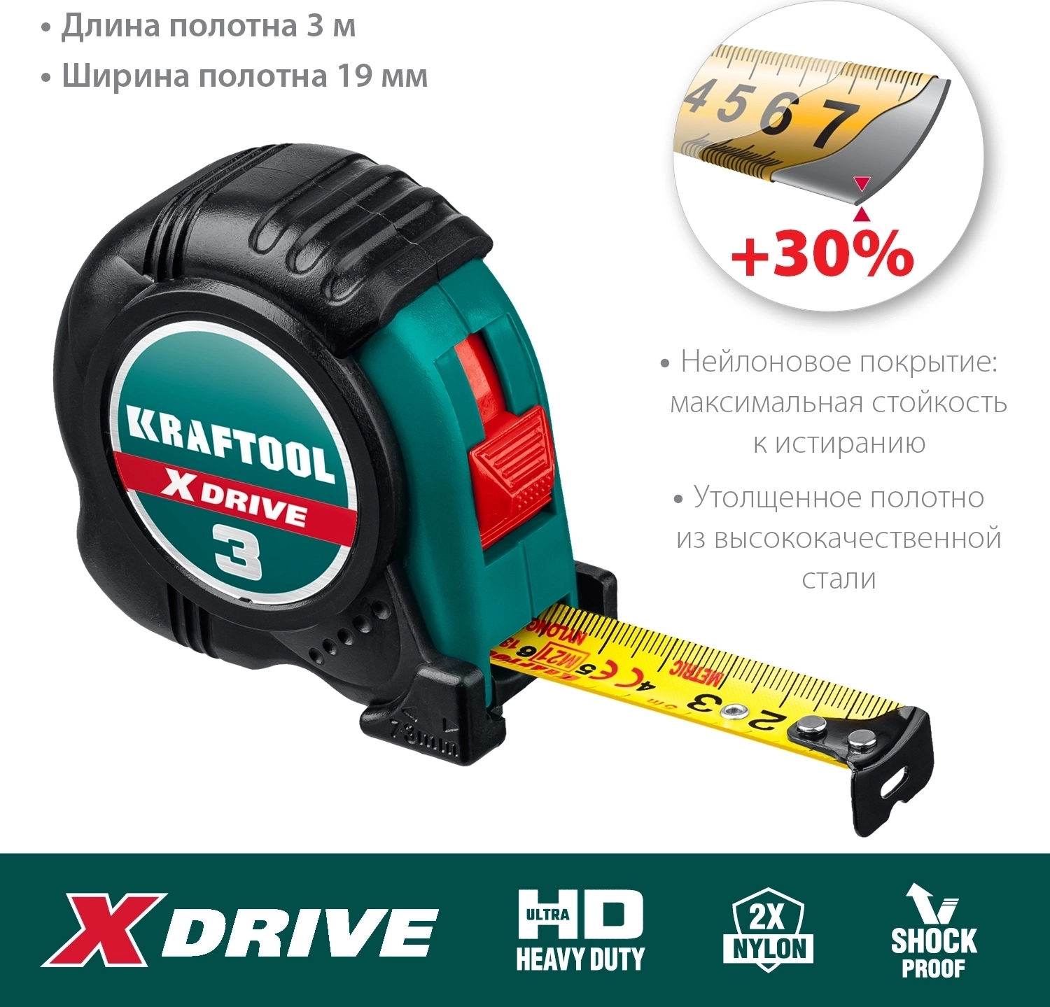Рулетка KRAFTOOL X-Drive, 3 м х 19 мм