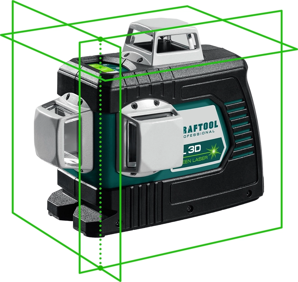 Тип линии: 1 x360 ° горизонтальный зеленый луч + 2x 360 ° вертикальный зеленый луч