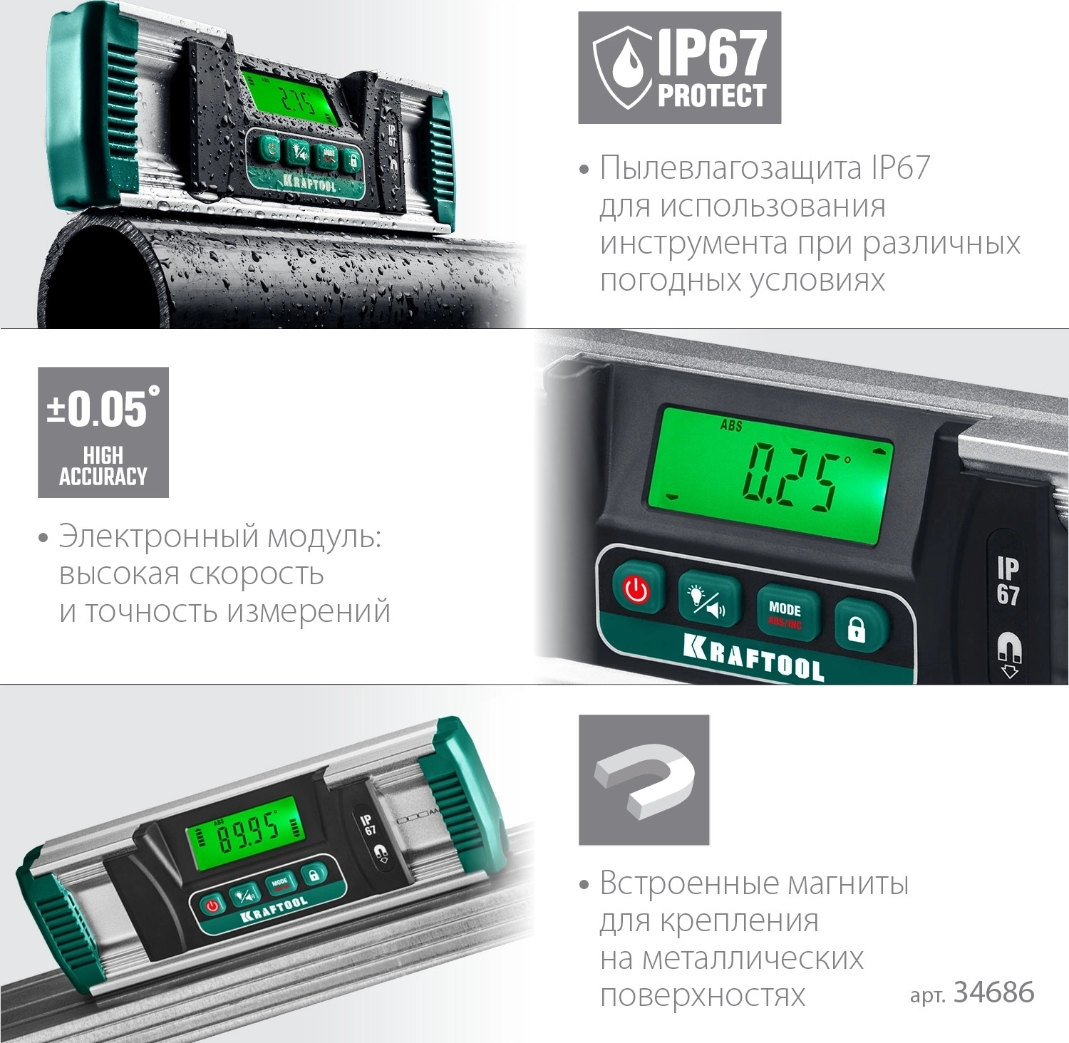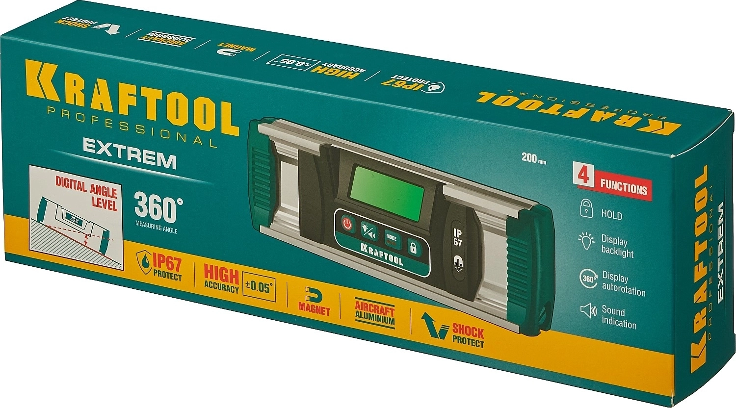 Электронный уровень-уклономер KRAFTOOL EXTREM, 0 - 360°, точность 0.05°, HOLD, IP67