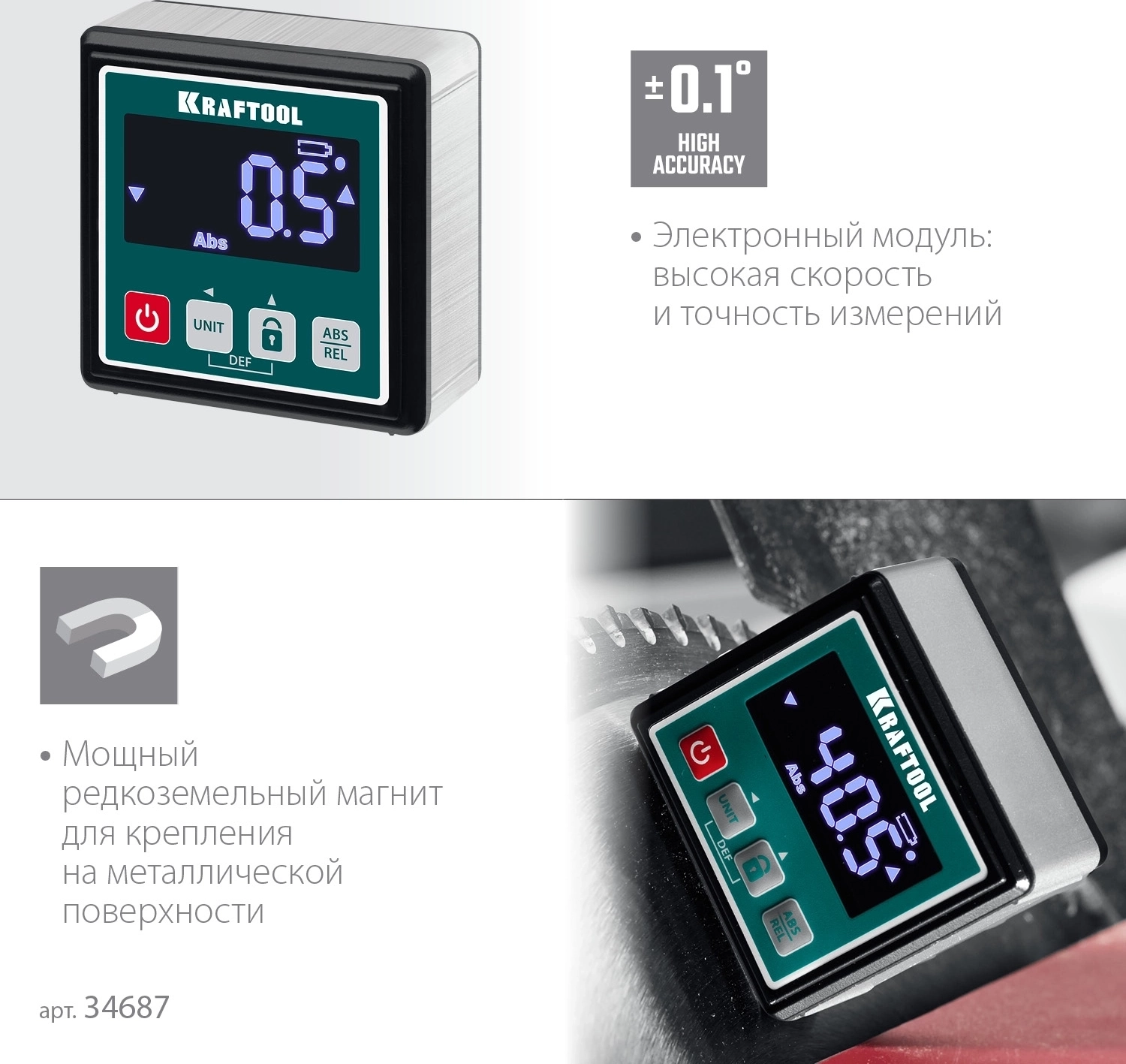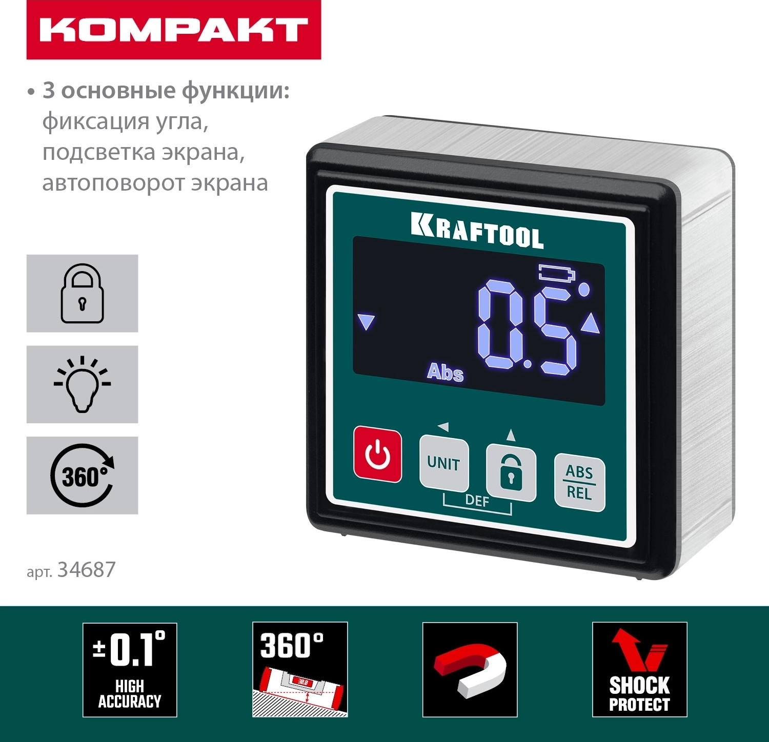 Уровень-уклономер электронный KRAFTOOL KOMPAKT, 4 х 90 С, точность 0.1