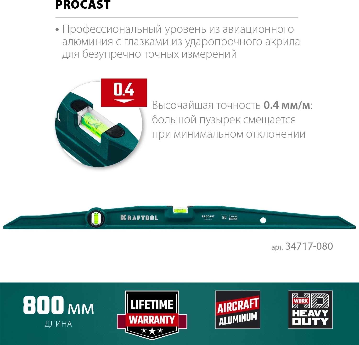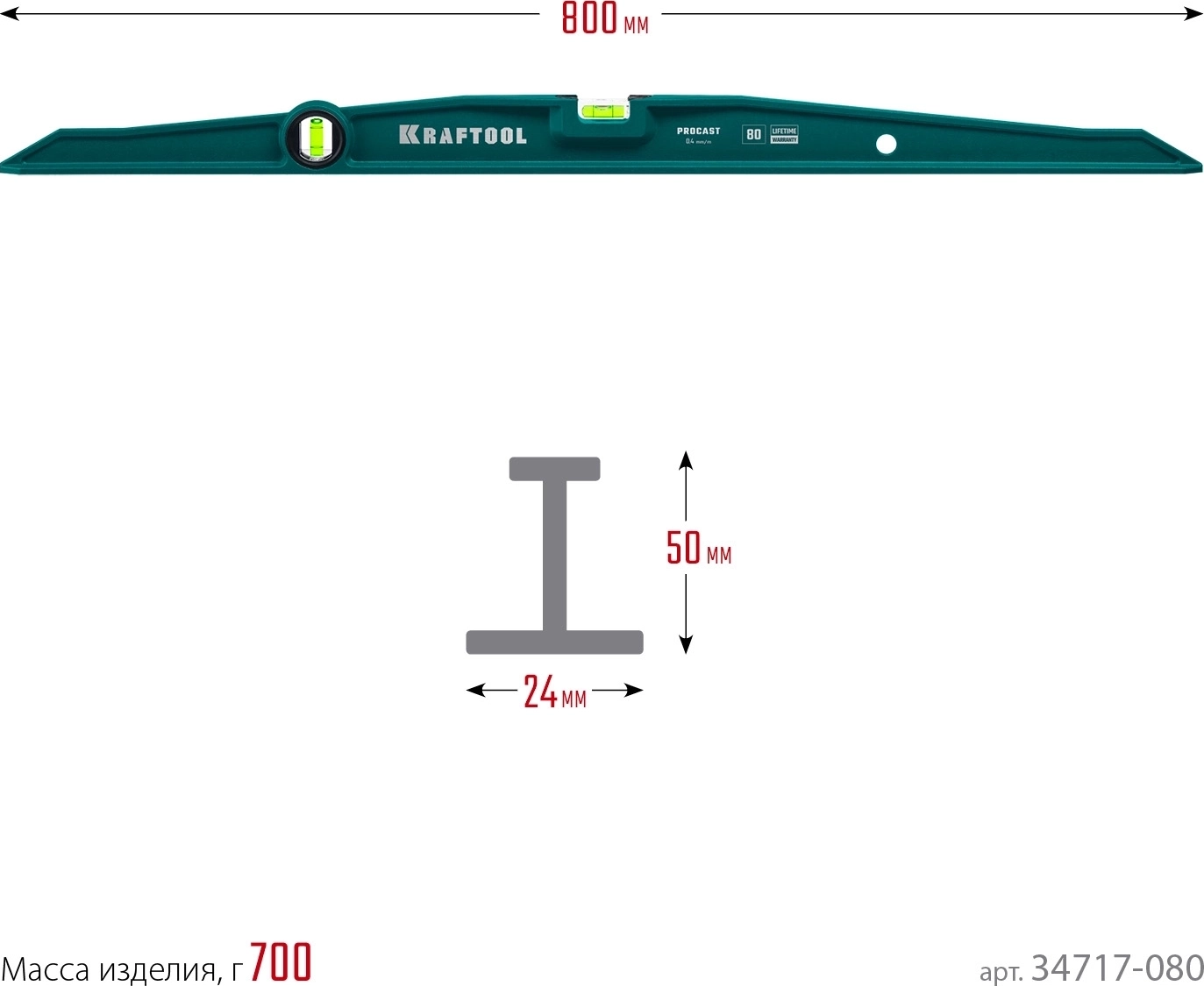 Литой уровень KRAFTOOL PROCAST, 800 мм