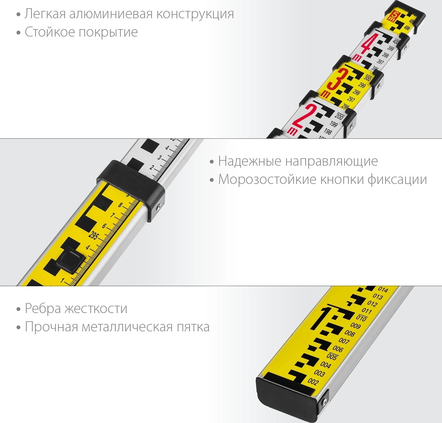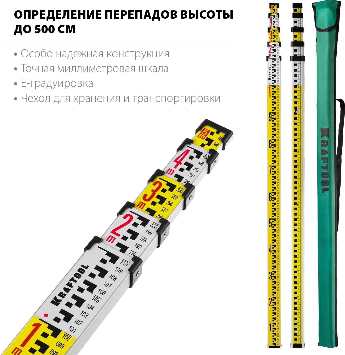 Профессиональный инструмент для работы с лазерным, оптическим инструментом для определения перепадов высоты. Имеет миллиметровую шкалу и E-градуировку .