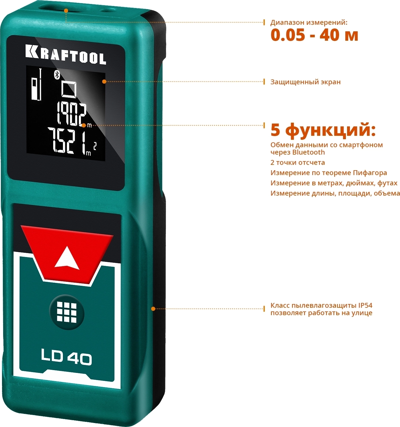 Лазерный дальномер KRAFTOOL LD-40, 5 см - 40 м