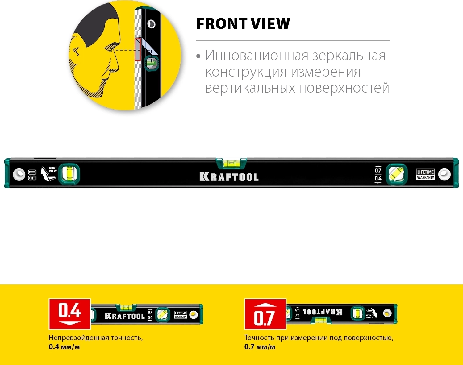 Уровень KRAFTOOL 800 мм, с зеркальным глазком
