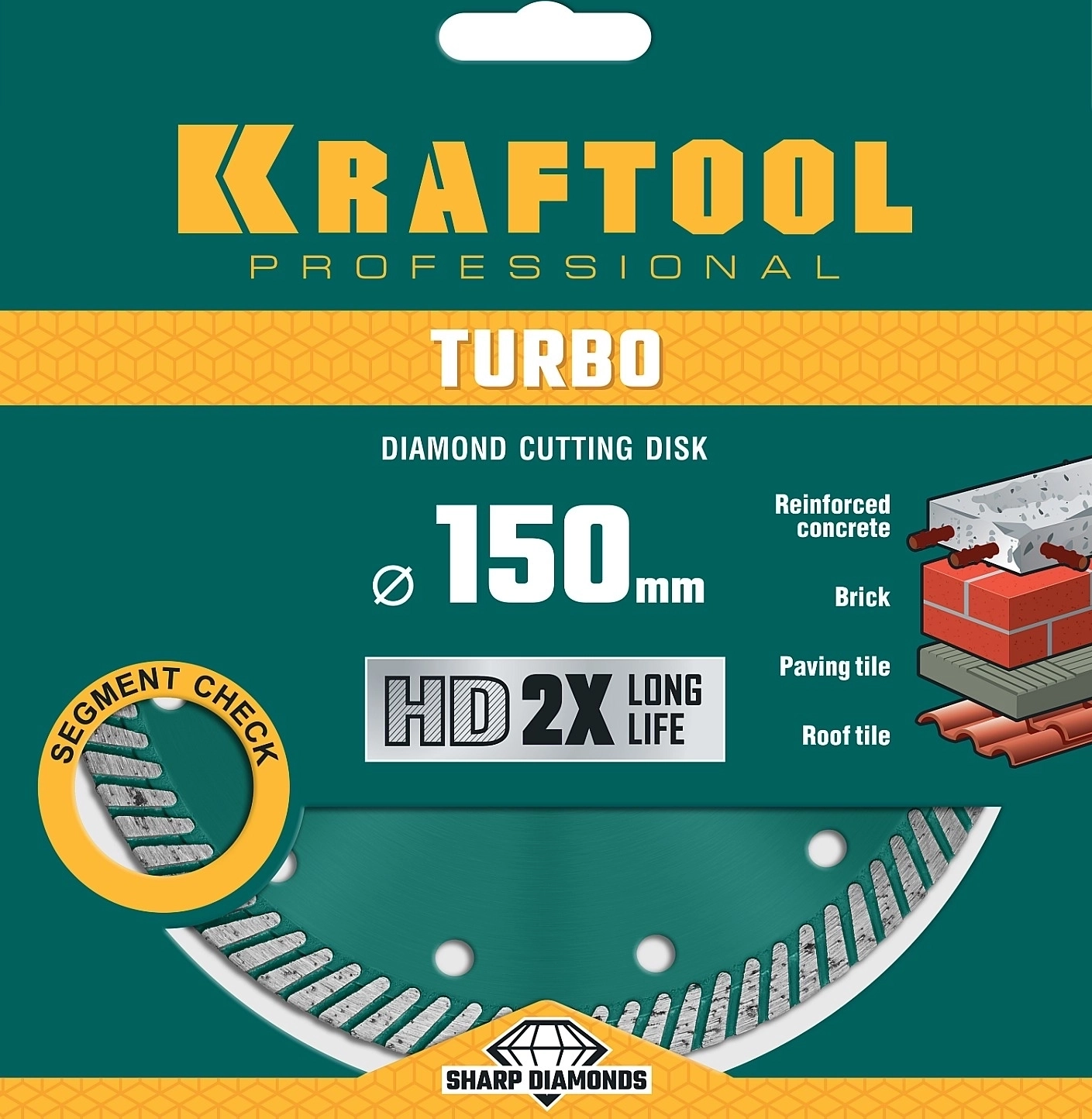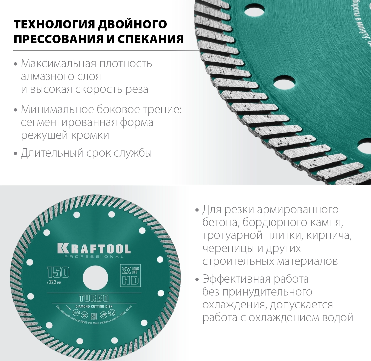 Сегментированный алмазный диск KRAFTOOL Turbo, 150 мм, (22.2 мм, 10 х 2.4 мм)
