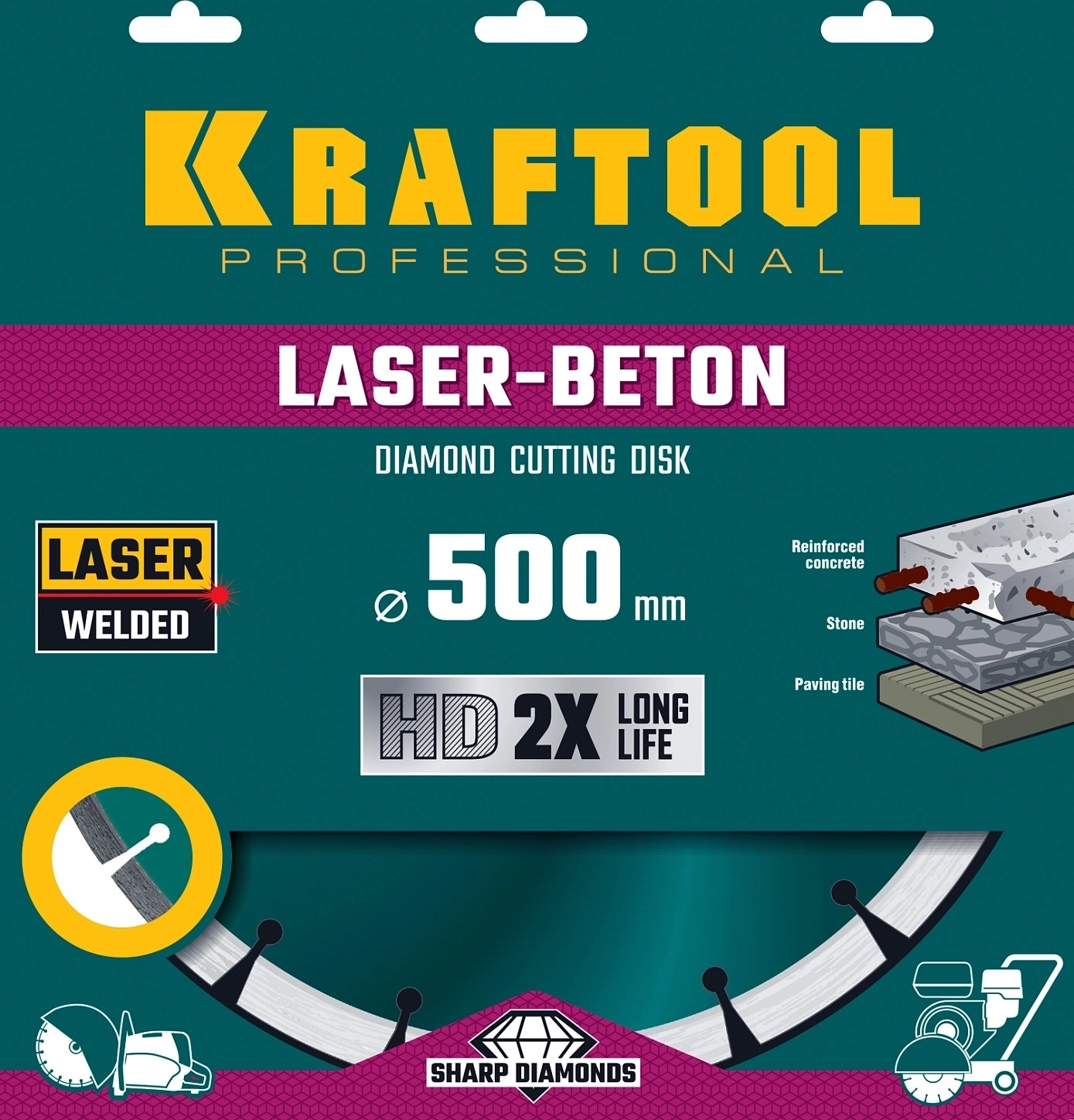 Алмазный диск KRAFTOOL LASER-BETON 500 мм (25.4/20 мм, 10х4.5 мм)