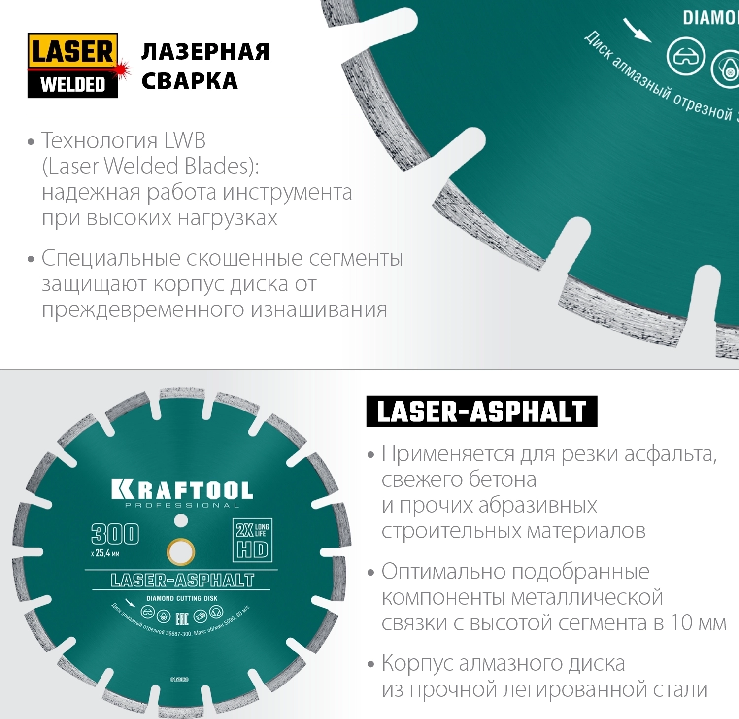 Алмазный диск KRAFTOOL LASER-ASPHALT 300 мм (25.4/20 мм, 10х3.2 мм)