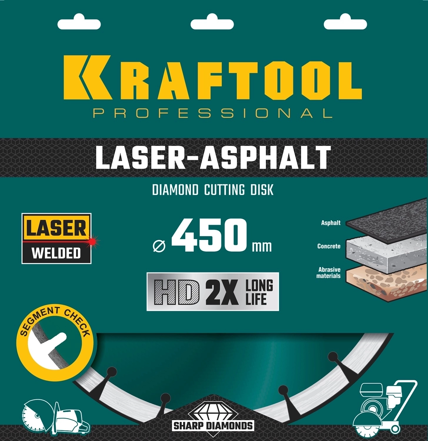 Алмазный диск KRAFTOOL LASER-ASPHALT 450 мм (25.4/20 мм, 10х4.0 мм)