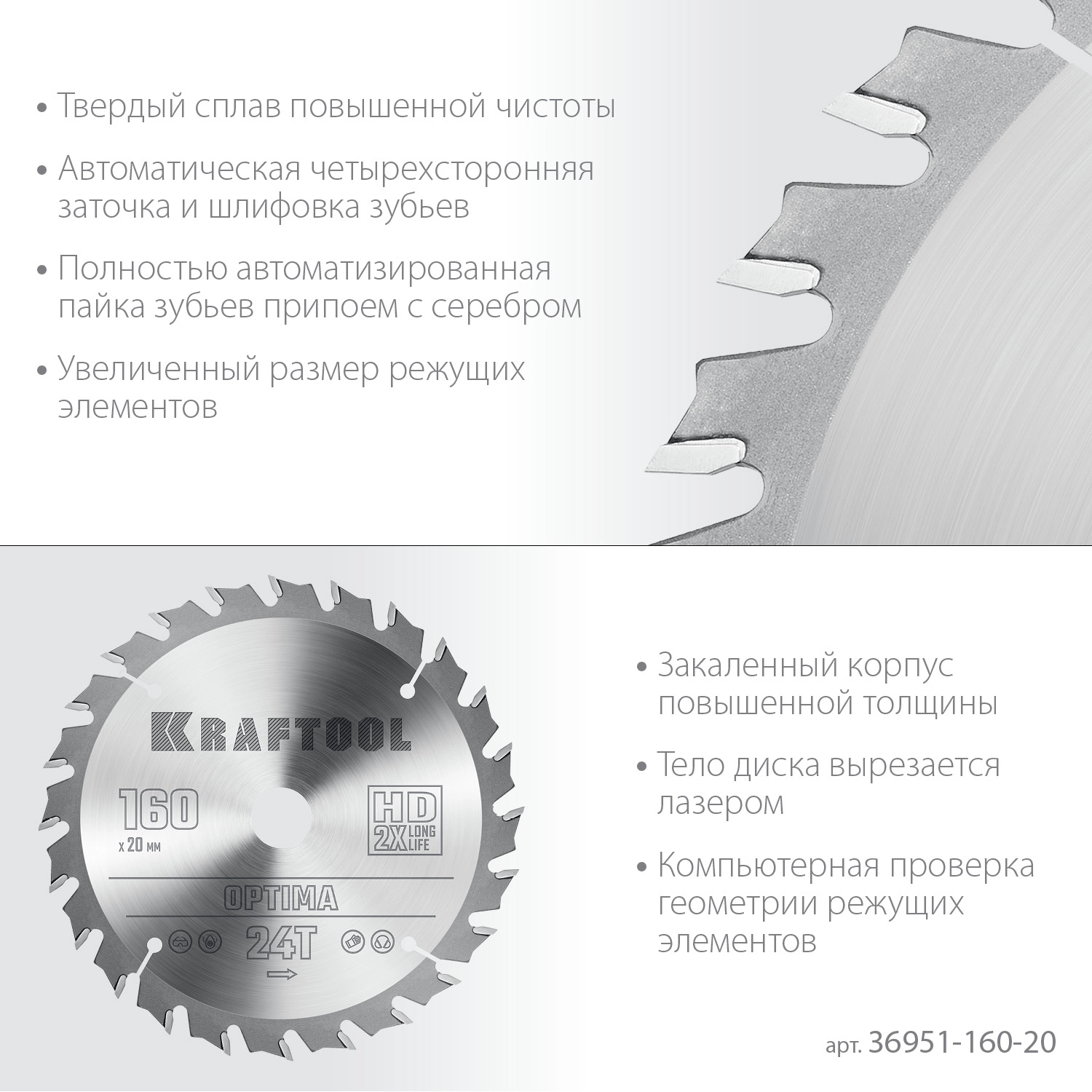 Пильный диск по дереву KRAFTOOL Optima, 160 х 20 мм, 24Т