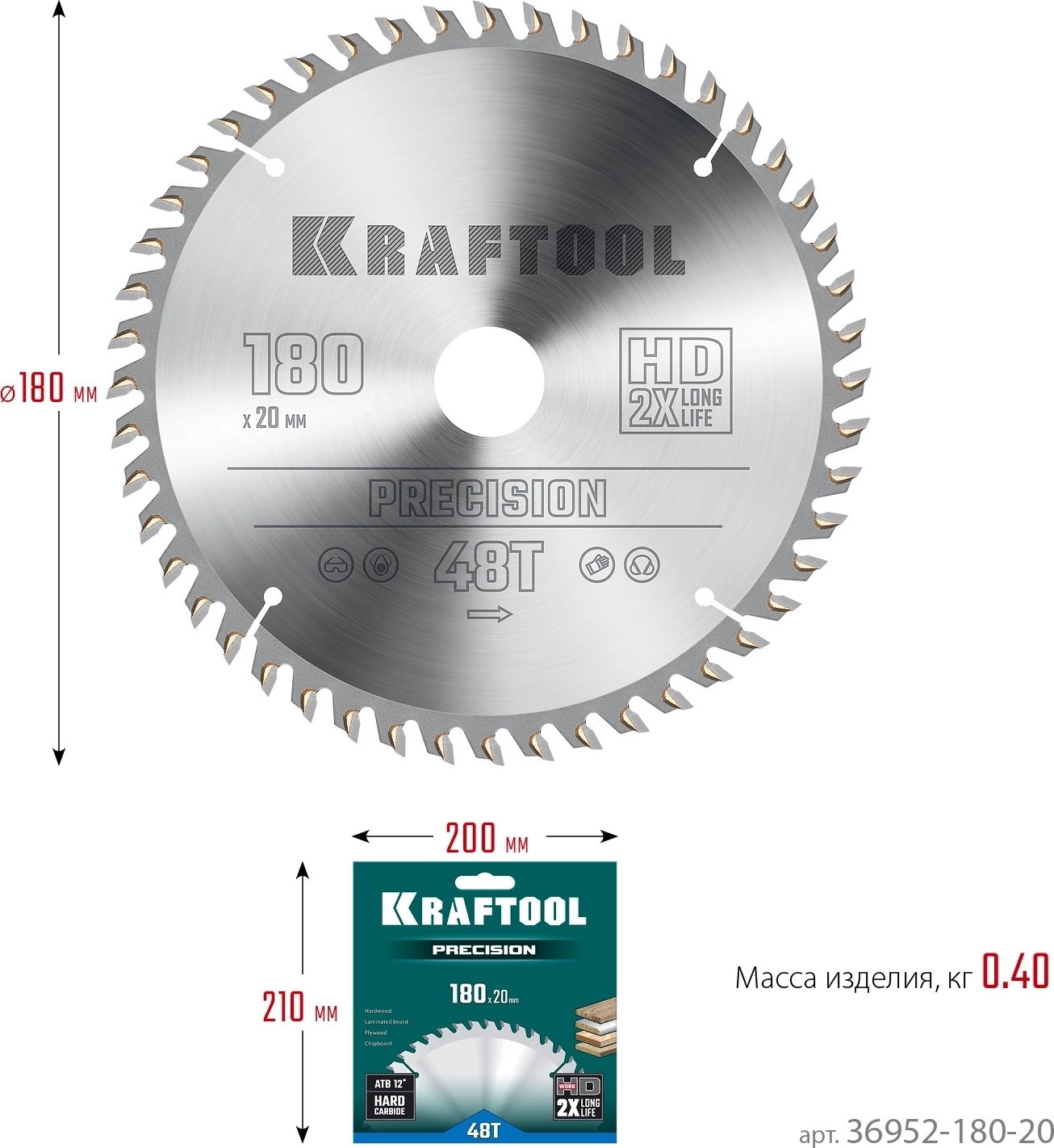 Пильный диск по дереву KRAFTOOL Precision, 180 х 20 мм, 48Т