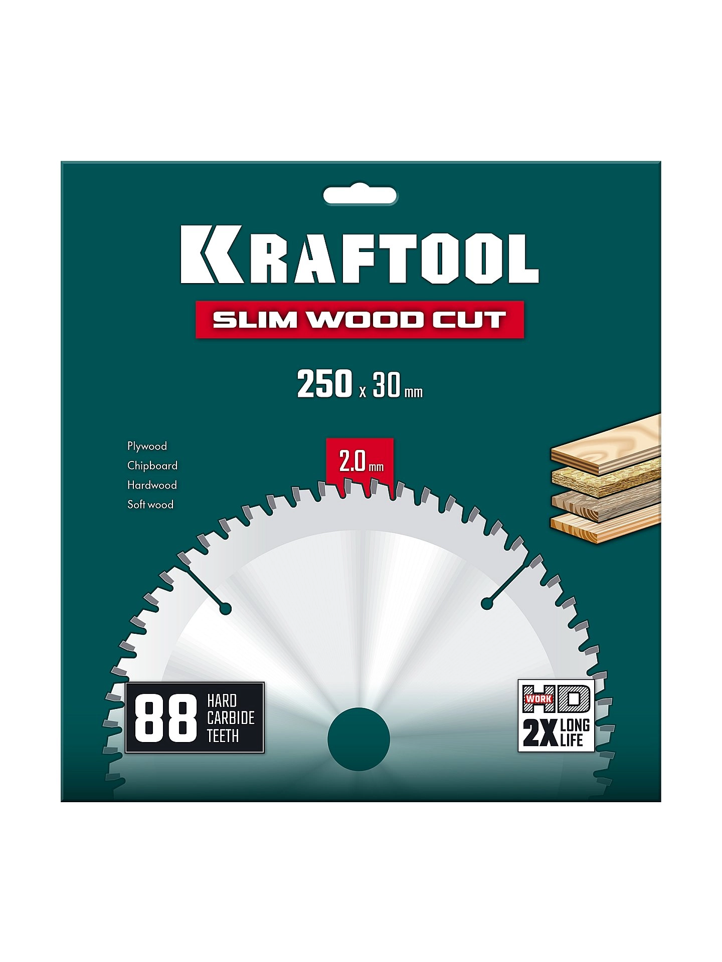 KRAFTOOL Slim wood cut 250 х 30 x 2.0 мм, 88Т, диск пильный по дереву