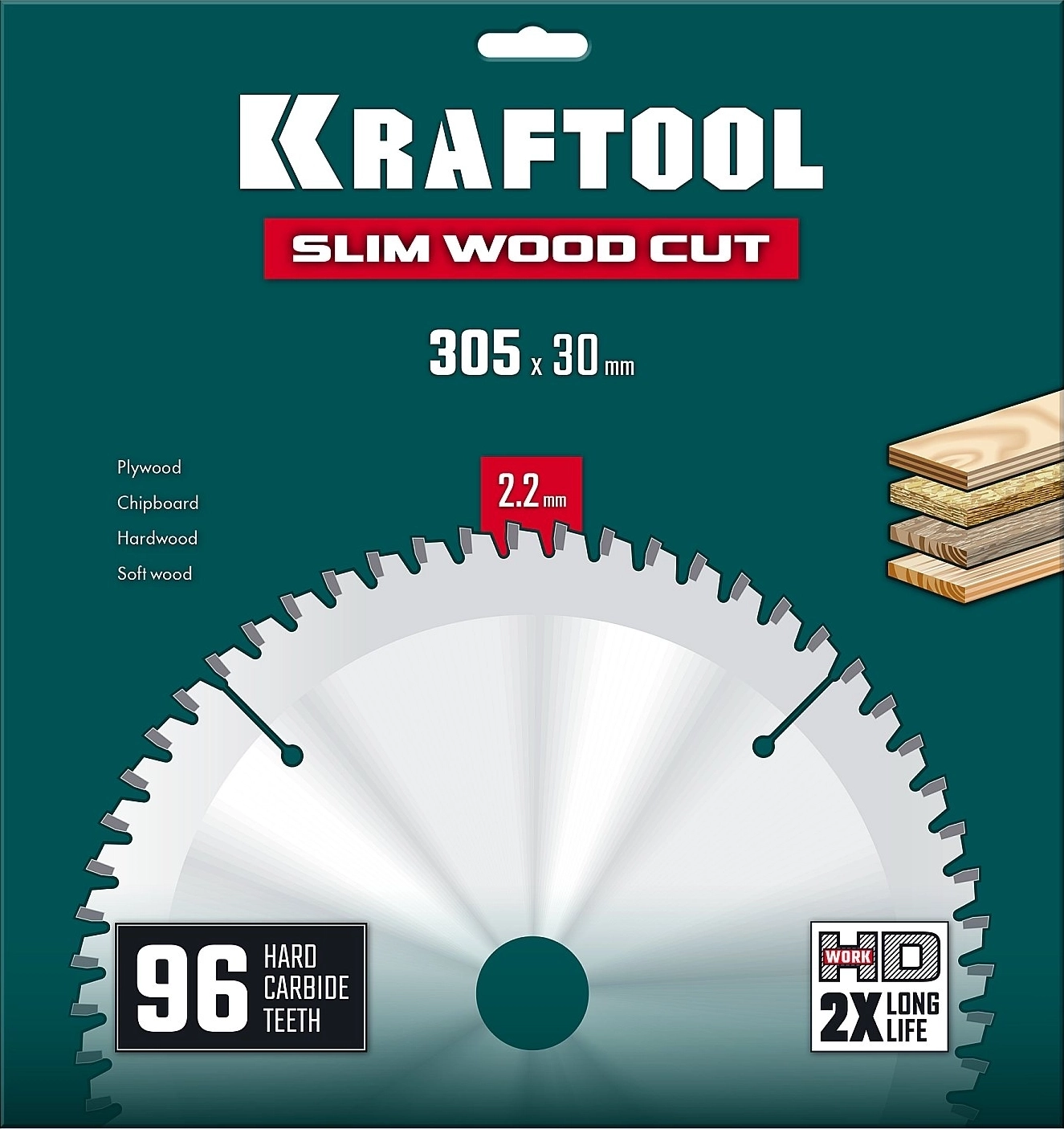 KRAFTOOL Slim wood cut 305 х 30 x 2.2 мм, 96Т, диск пильный по дереву