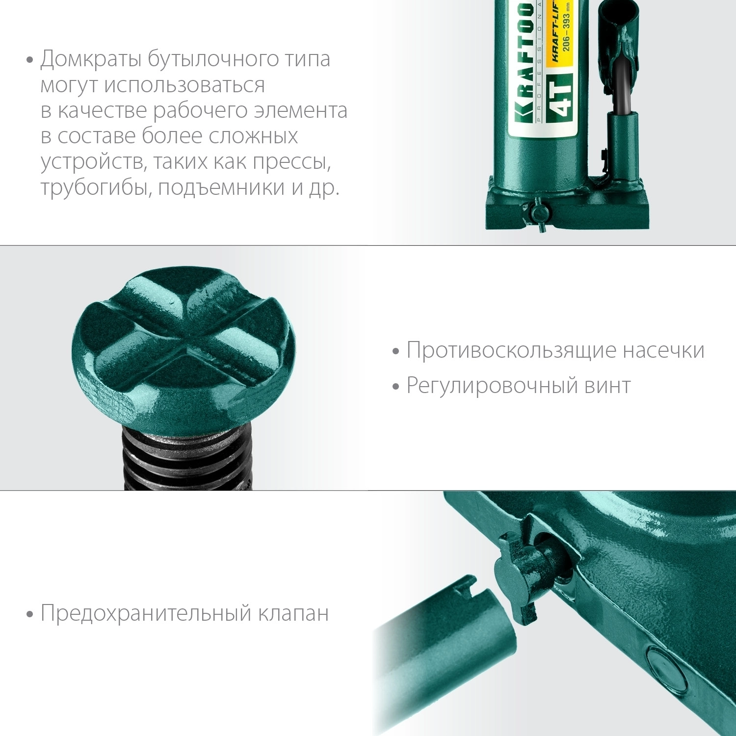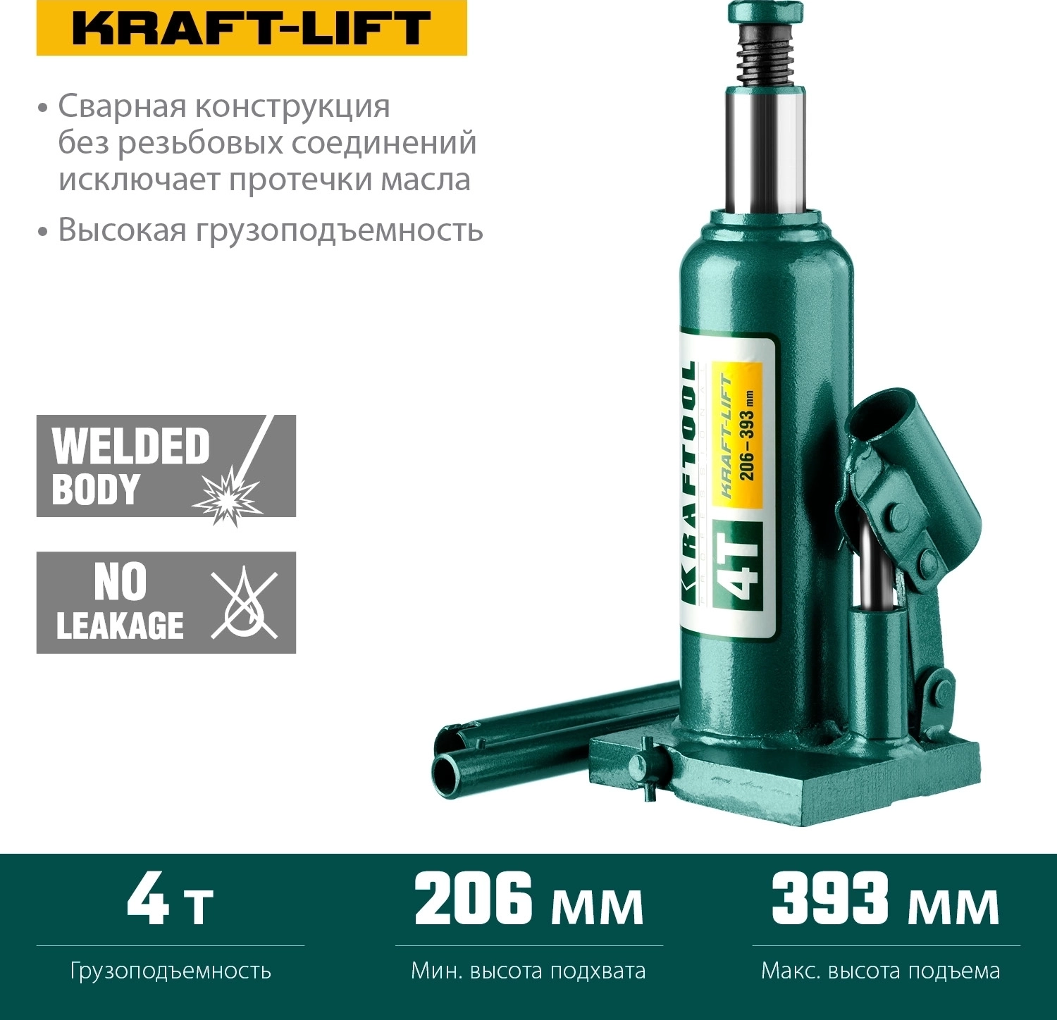 Бутылочный гидравлический домкрат KRAFTOOL KRAFT-LIFT, 4 т, 194 - 372 мм