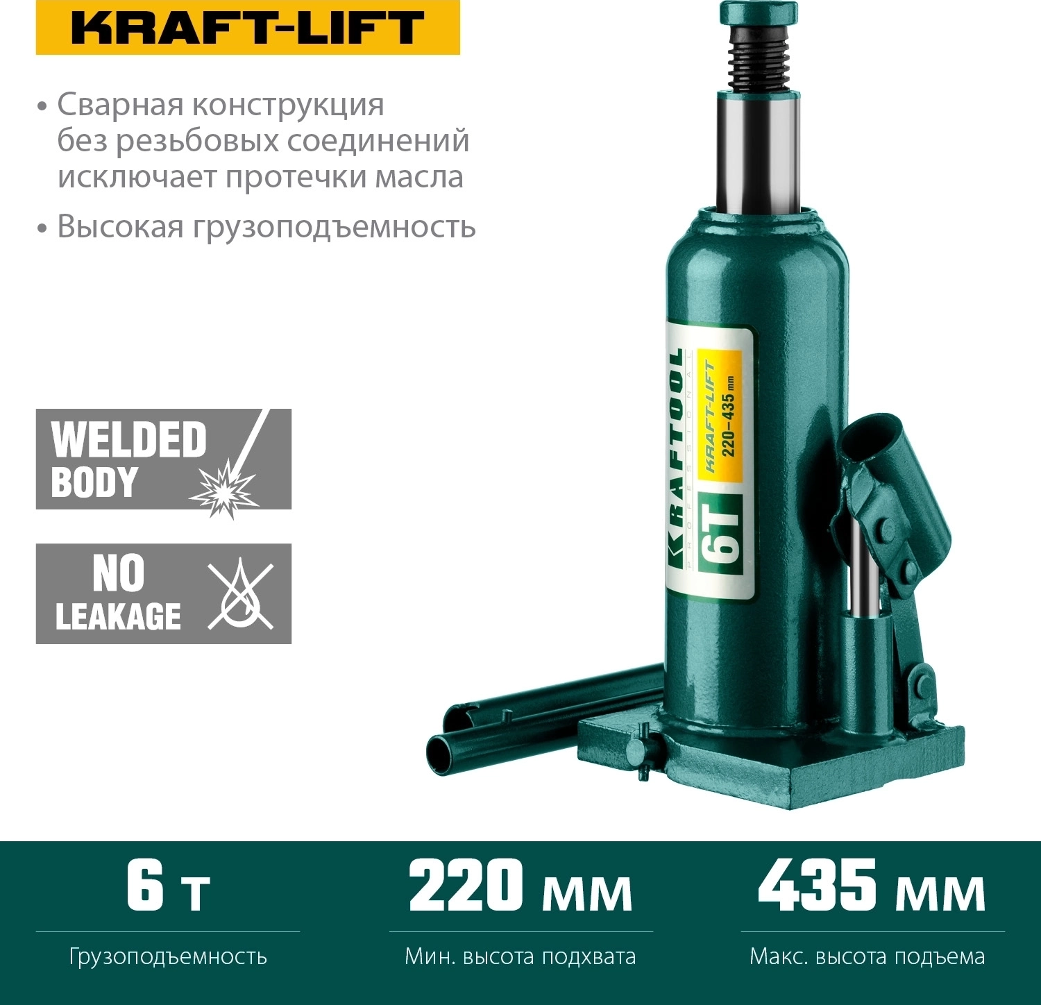 Бутылочный гидравлический домкрат KRAFTOOL KRAFT-LIFT, 6 т, 216 - 413 мм