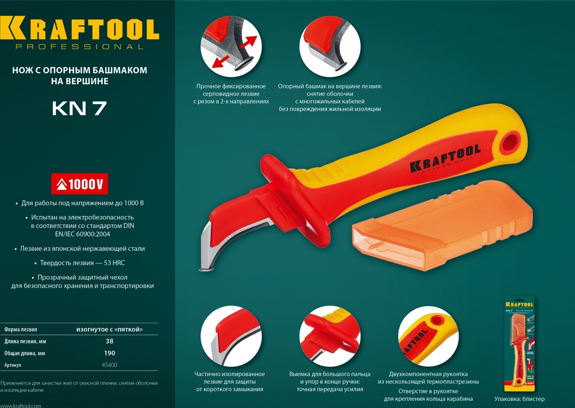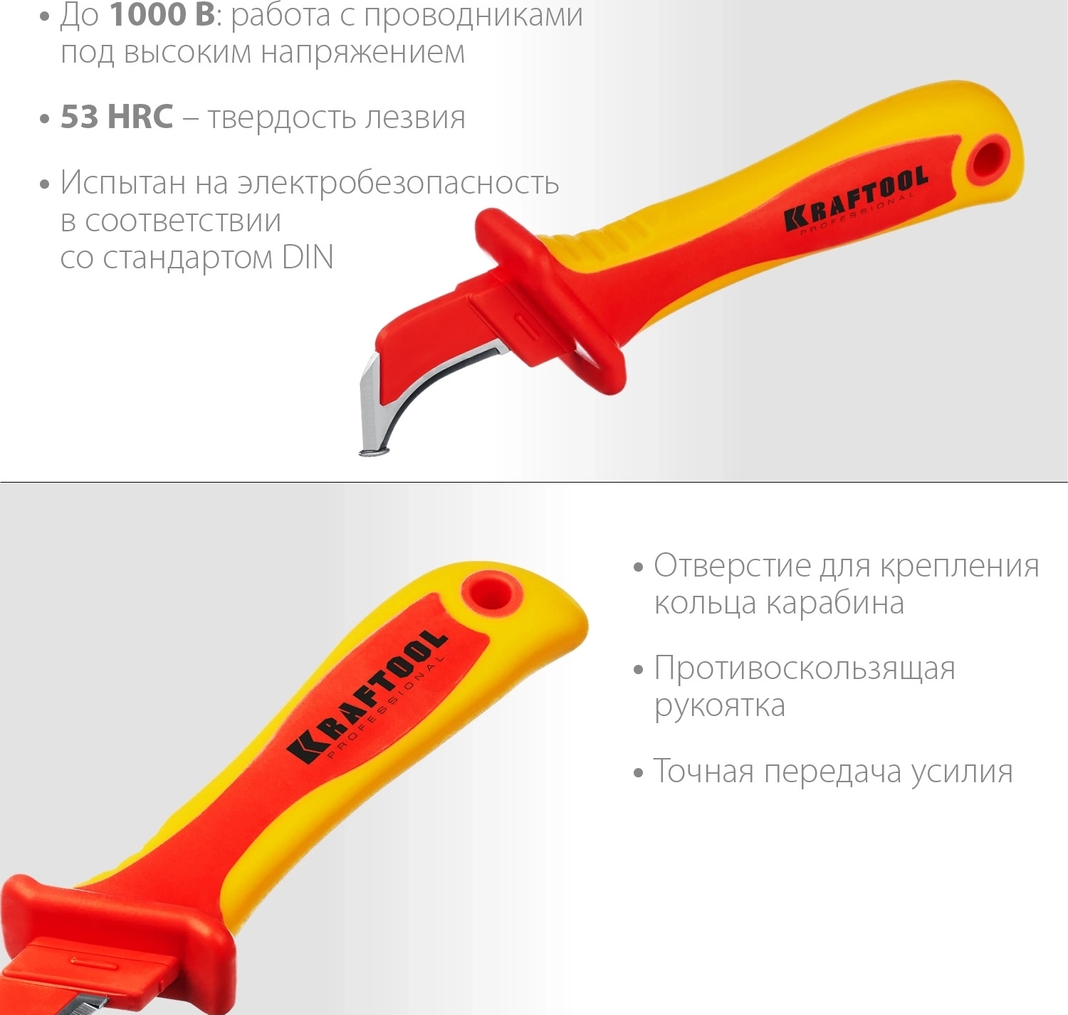 Диэлектрический нож электрика KRAFTOOL KN-7, 1000 В, изогнутый