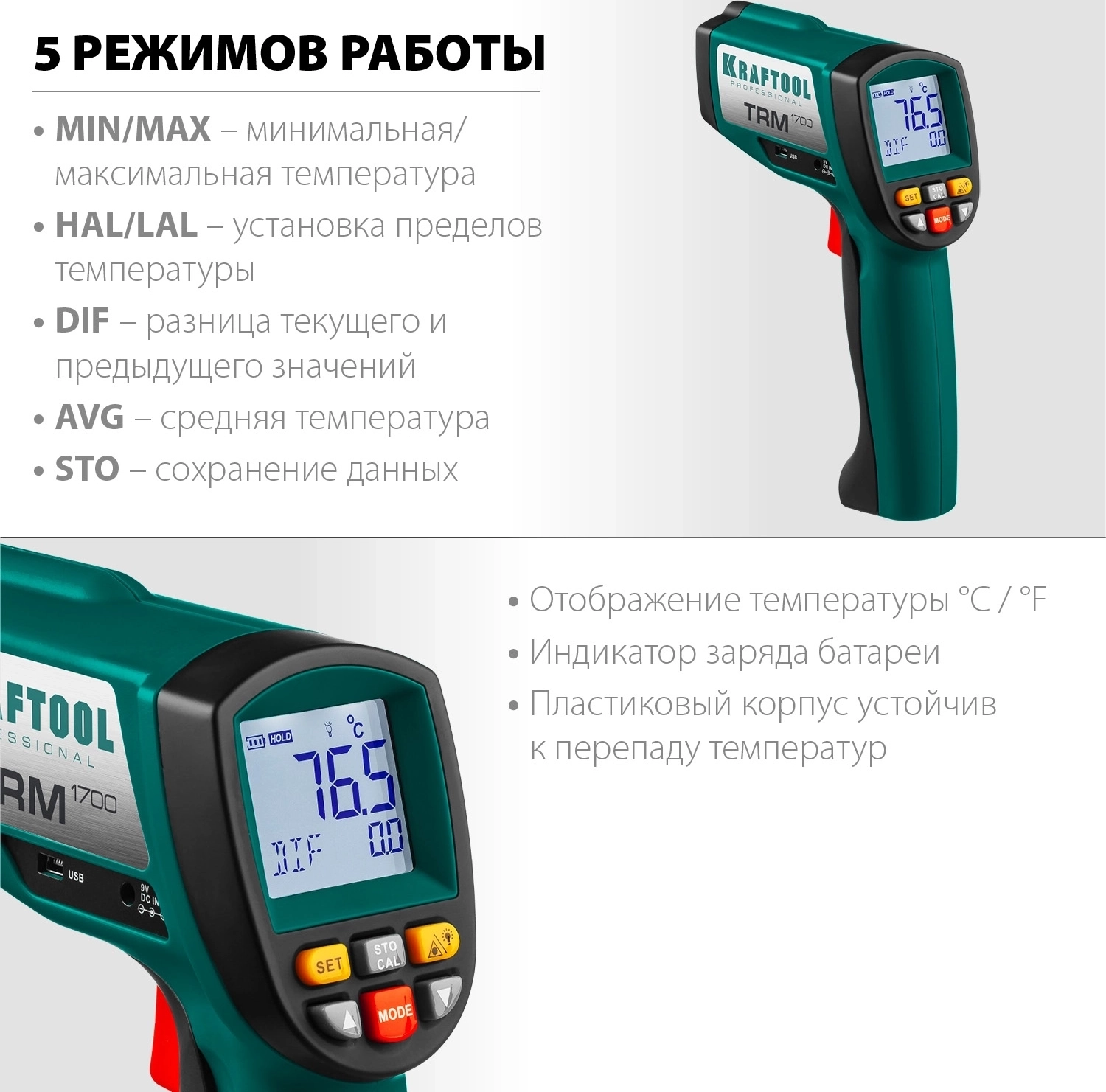 Пирометр инфракрасный KRAFTOOL TRM-1700, -30° +1650°С