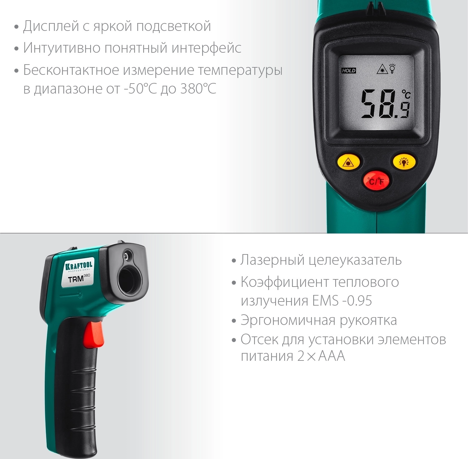 Пирометр инфракрасный KRAFTOOL TRM-380, -50° +380°С