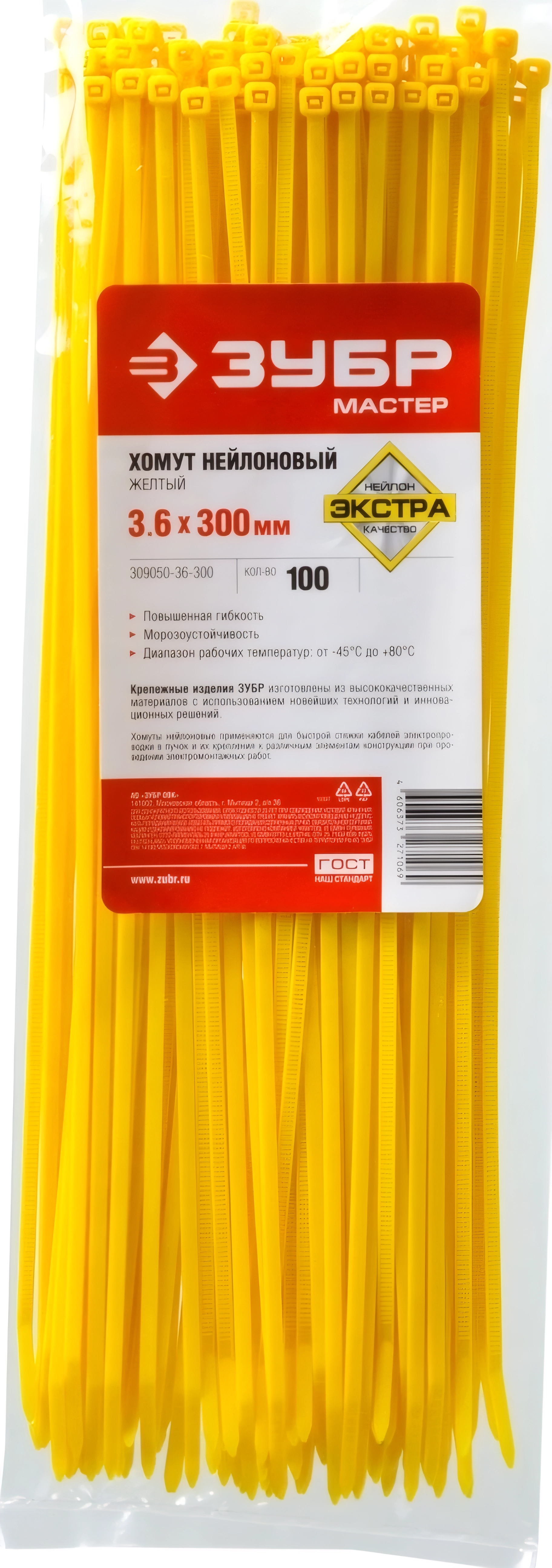 Кабельные стяжки ЗУБР КС-Ж1 3.6 x 300 мм нейлон РА66 100 шт желтые