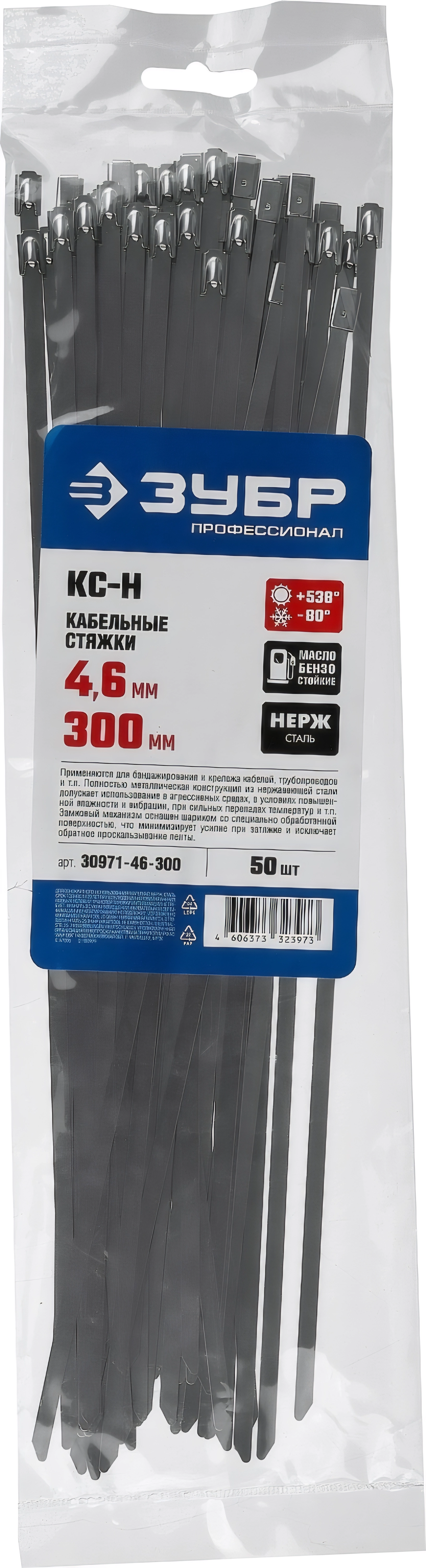 Кабельные стяжки нержавеющие ЗУБР КС-Н 4.6 x 300 мм 50 шт