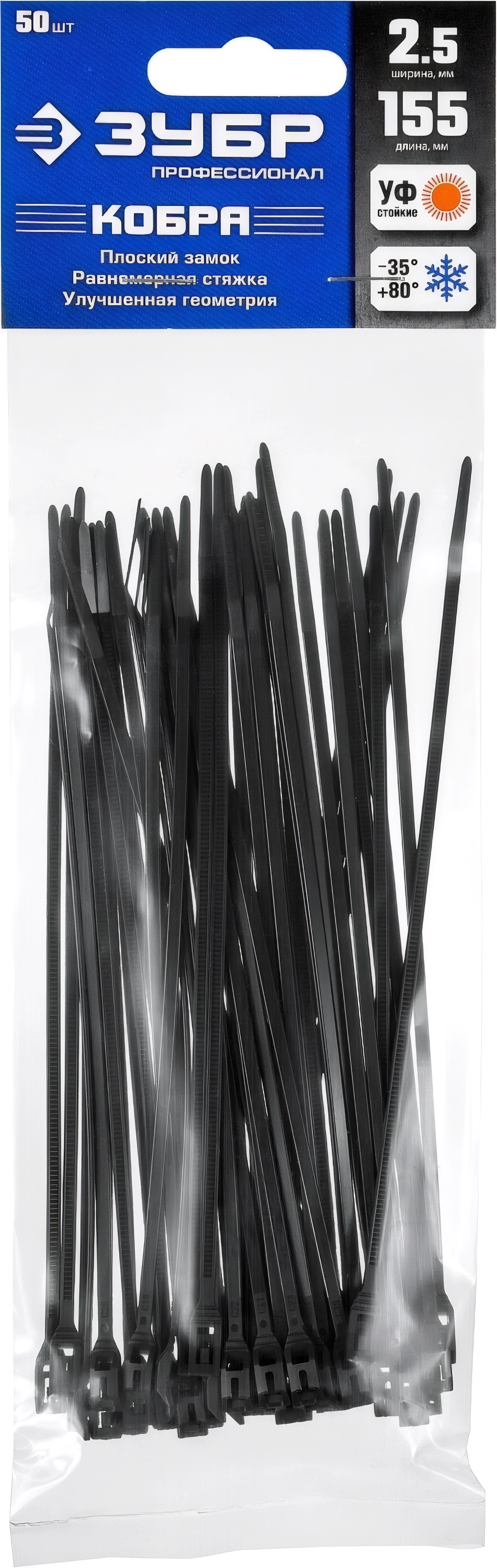 Кабельные стяжки с плоским замком ЗУБР КОБРА 2.5 x 155 мм нейлон РА66 50 шт черные