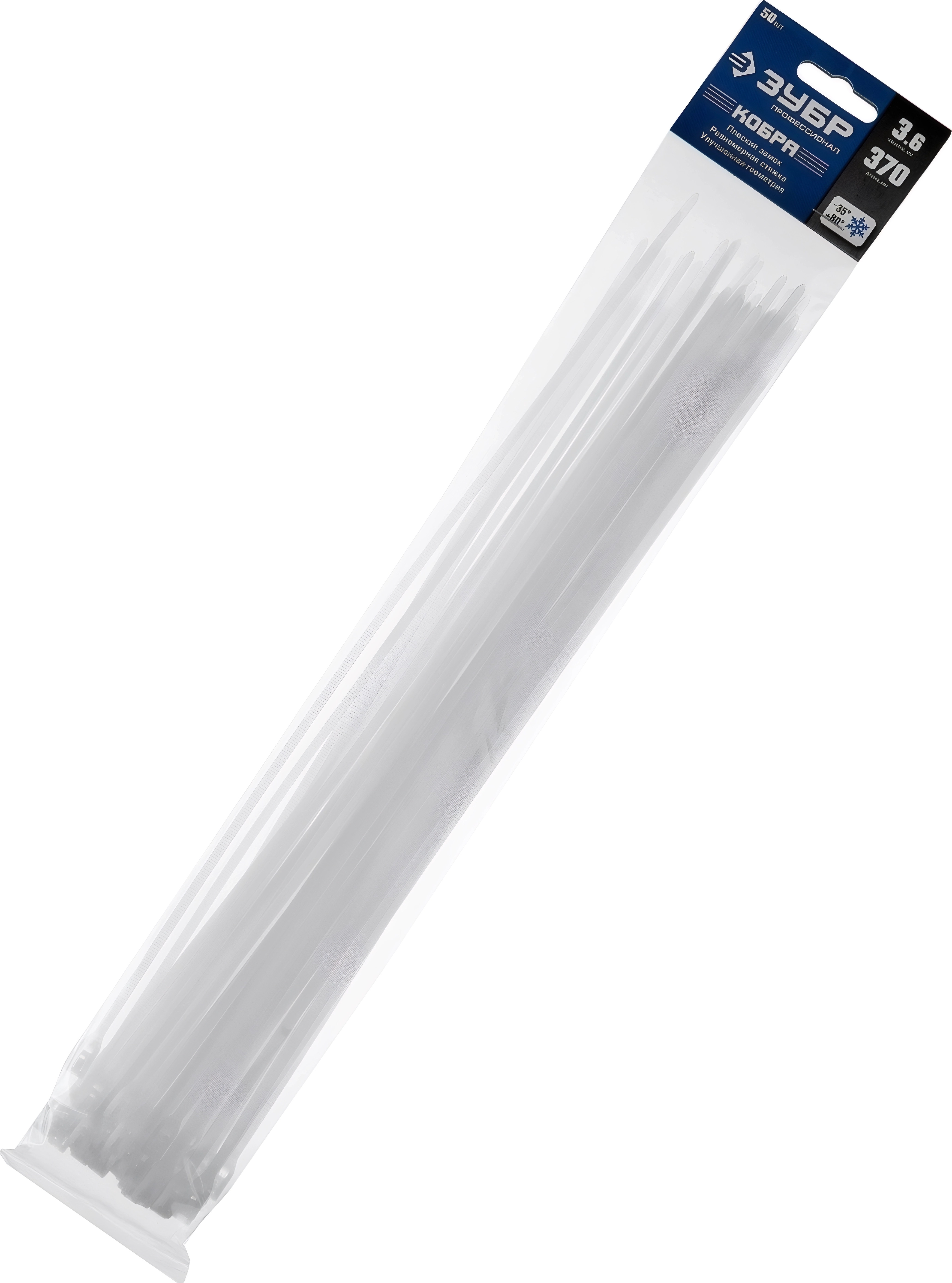 Кабельные стяжки с плоским замком ЗУБР КОБРА 3.6 x 370 мм нейлон РА66 50 шт белые