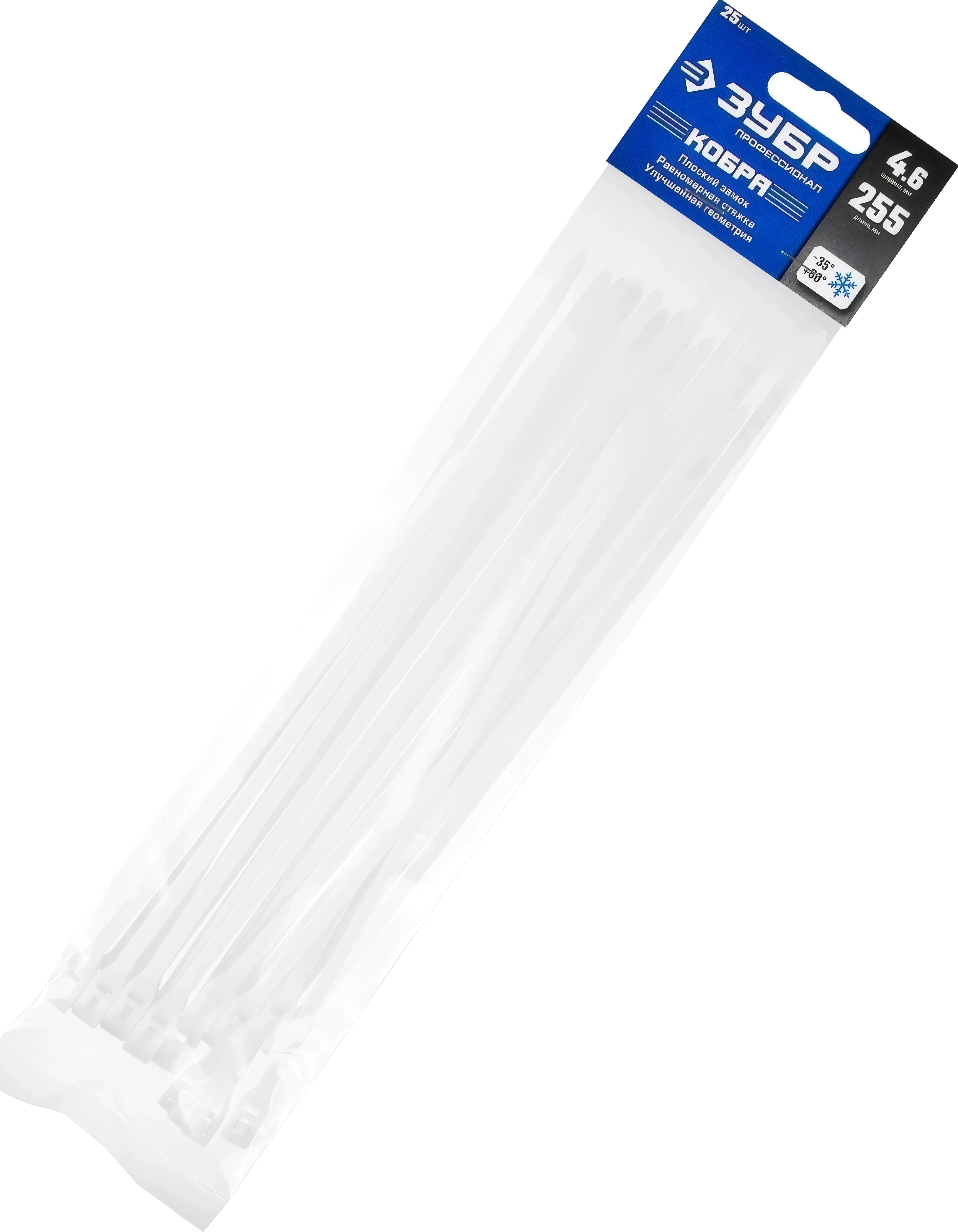 Кабельные стяжки с плоским замком ЗУБР КОБРА 4.6 x 255 мм нейлон РА66 25 шт белые