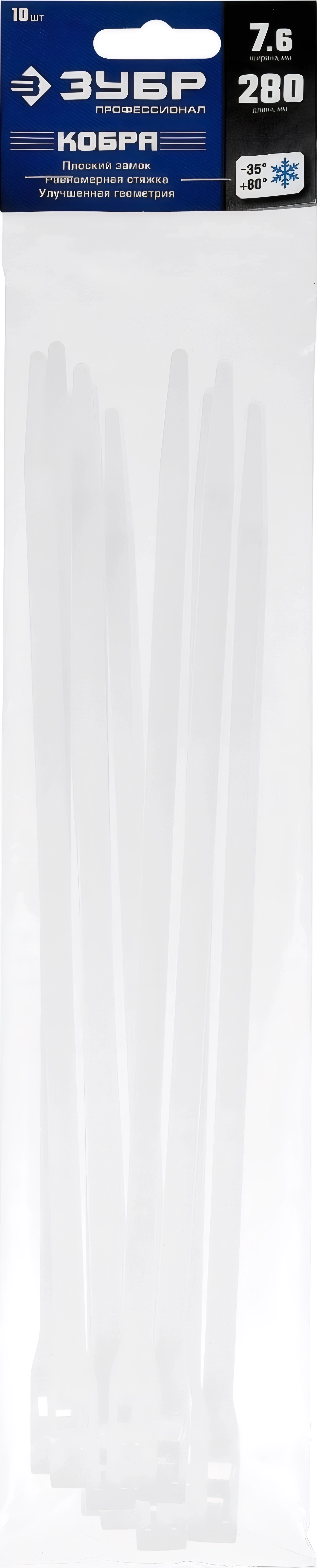 Кабельные стяжки с плоским замком ЗУБР КОБРА 7.6 x 280 мм нейлон РА66 10 шт белые