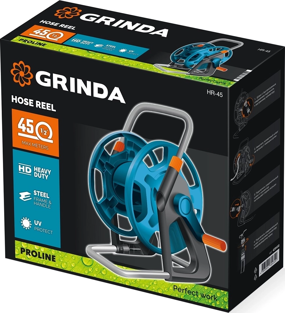 Катушка для шлангов GRINDA ProLine HR-45, 45м x 1/2″ и 20м х 3/4″