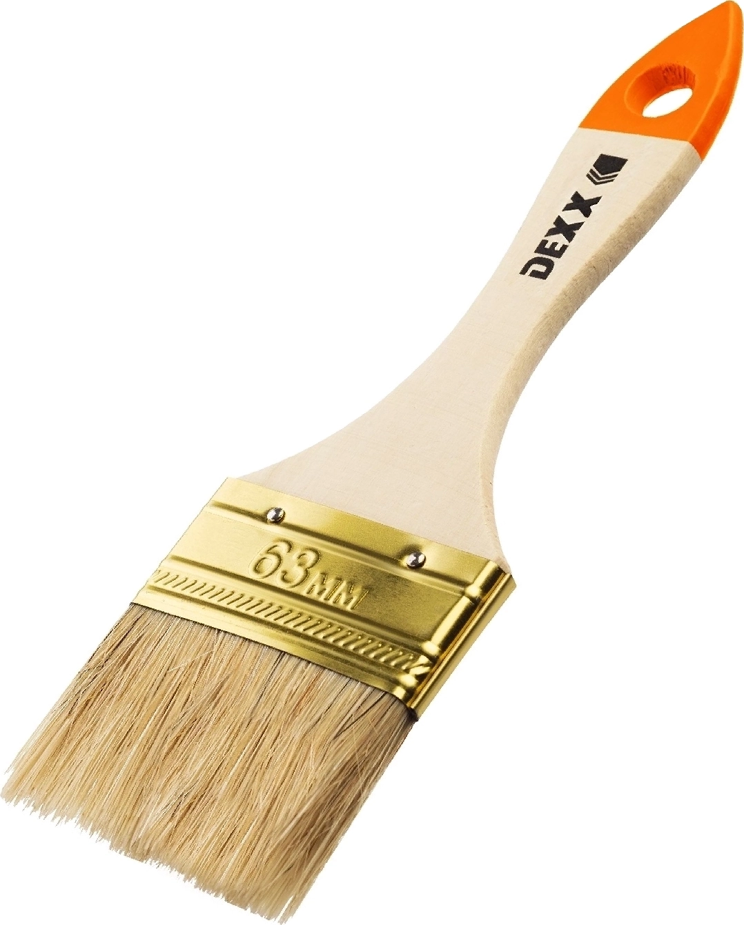 Плоская кисть УНИВЕРСАЛ, 63 мм, 2.5″, светлая натуральная щетина, деревянная ручка, все виды ЛКМ арт. 99830