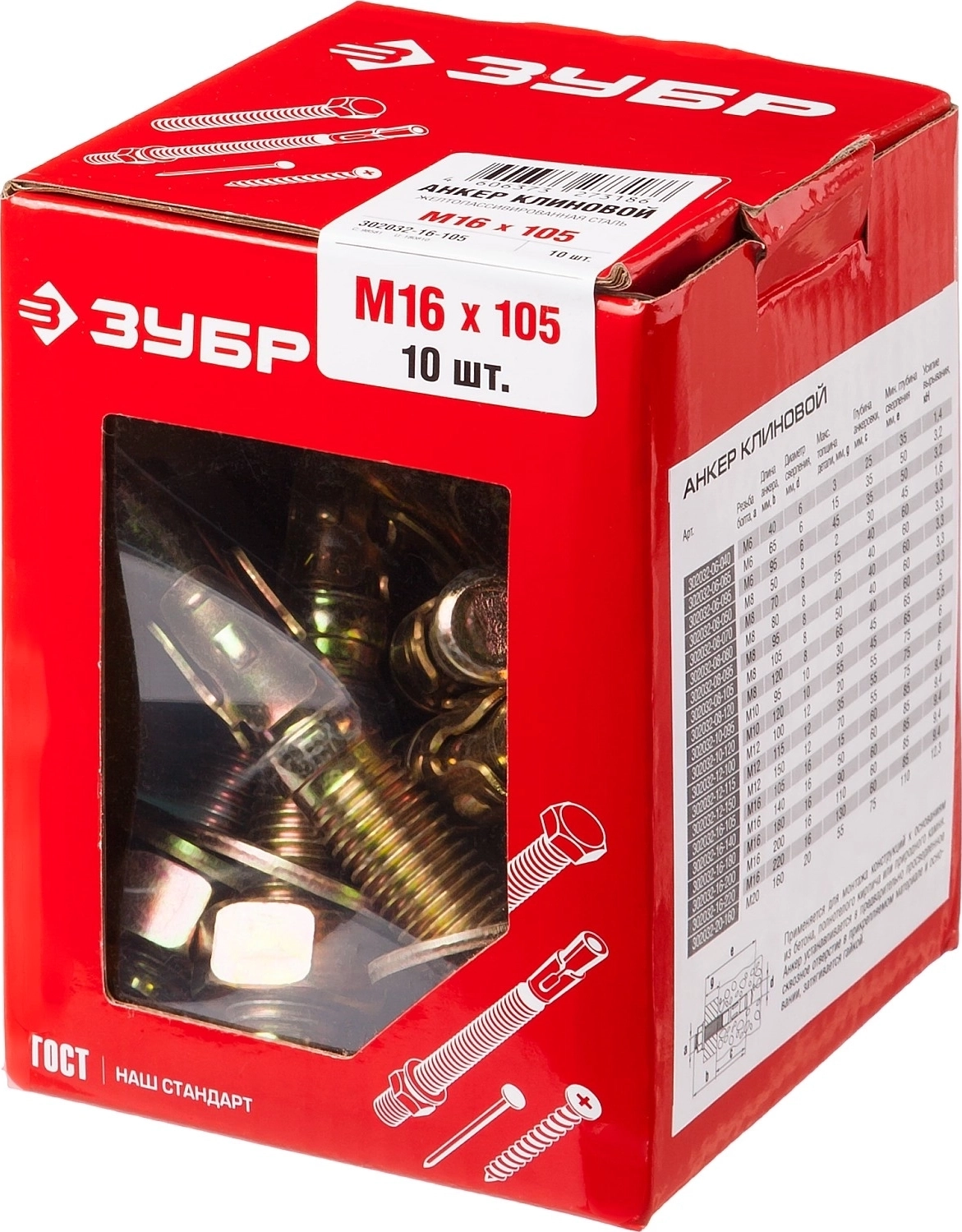 Клиновой анкер ЗУБР М16 х 105 мм, 10 шт