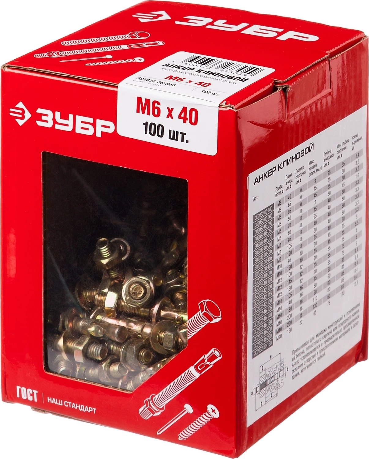 Клиновой анкер ЗУБР М6 х 40 мм, 100 шт