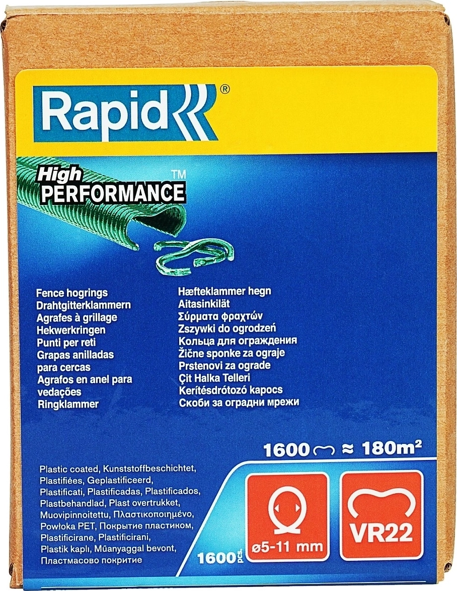 Кольцевые профессиональные стальные скобы RAPID FP222, зеленые, VR22, 5 - 11 мм, 1600 шт
