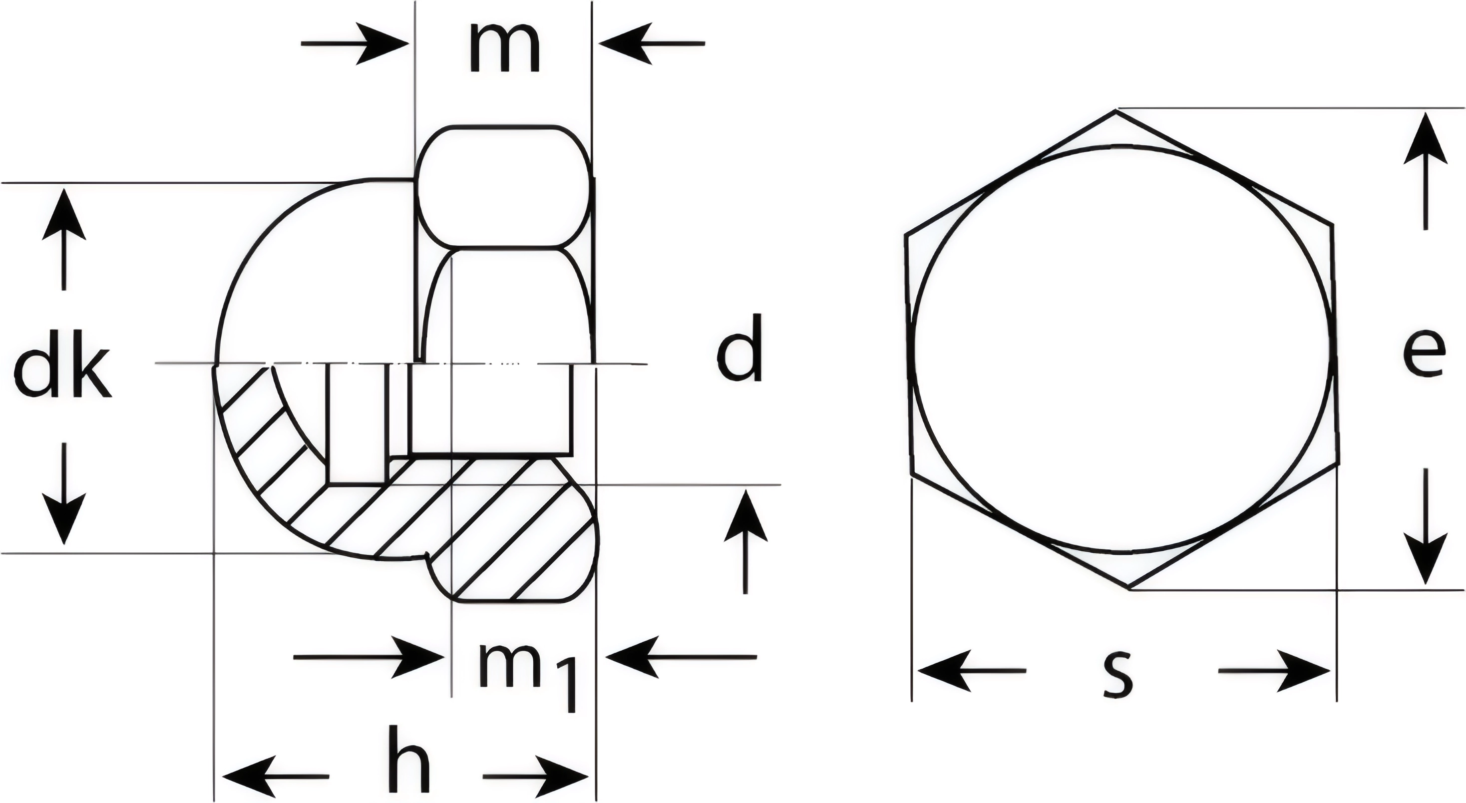 Гайки колпачковые изготовлены из высококачественной стали в полном соответствии с действующими стандартами и техническими предписаниями. Находят широкое применение в машиностроении, приборостроении, строительстве, быту и т.д.