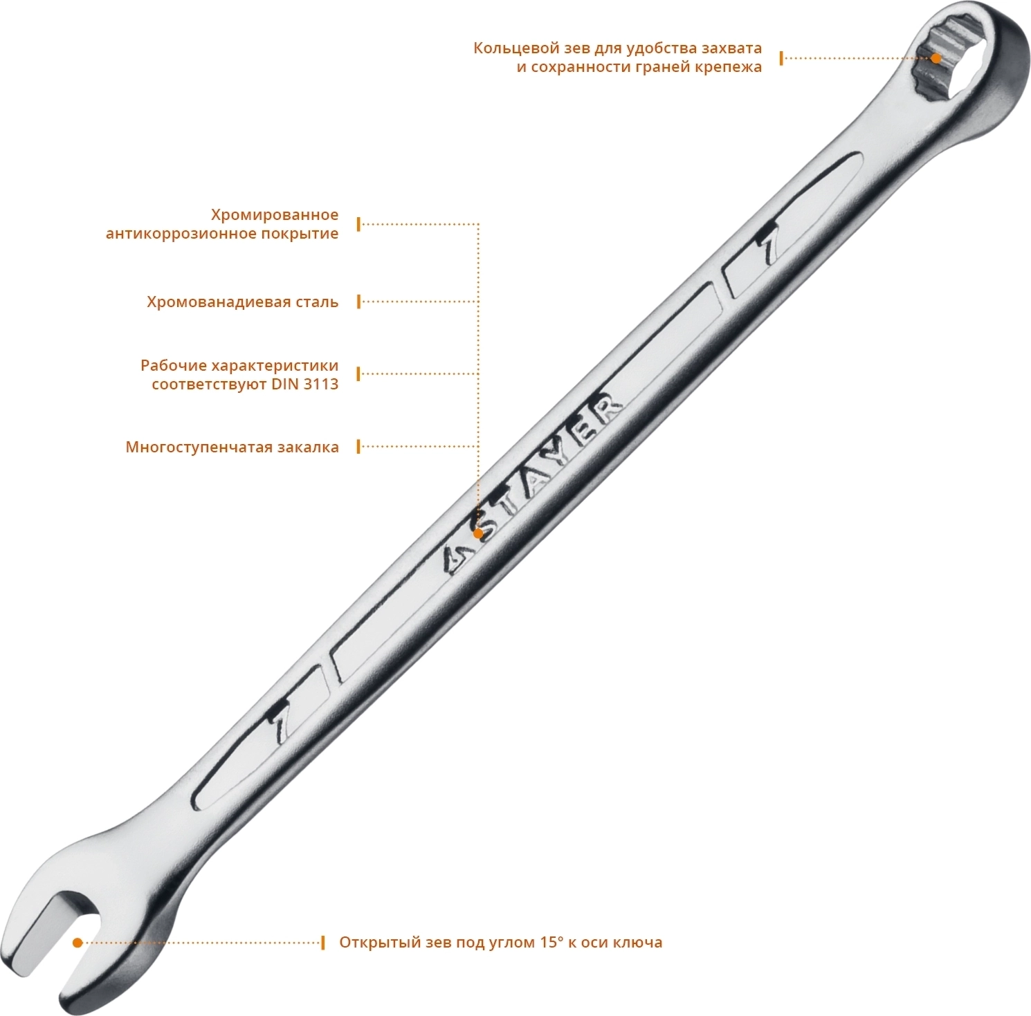 Комбинированный гаечный ключ Professional STAYER HERCULES 7 мм