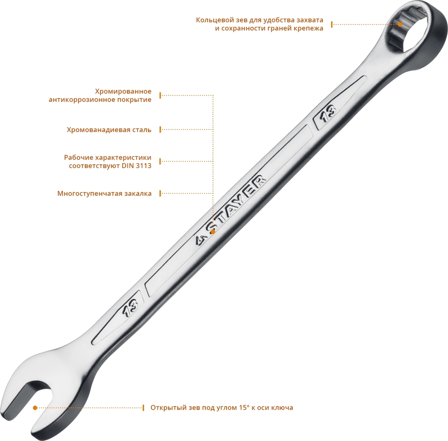 Комбинированный гаечный ключ Professional STAYER HERCULES 13 мм