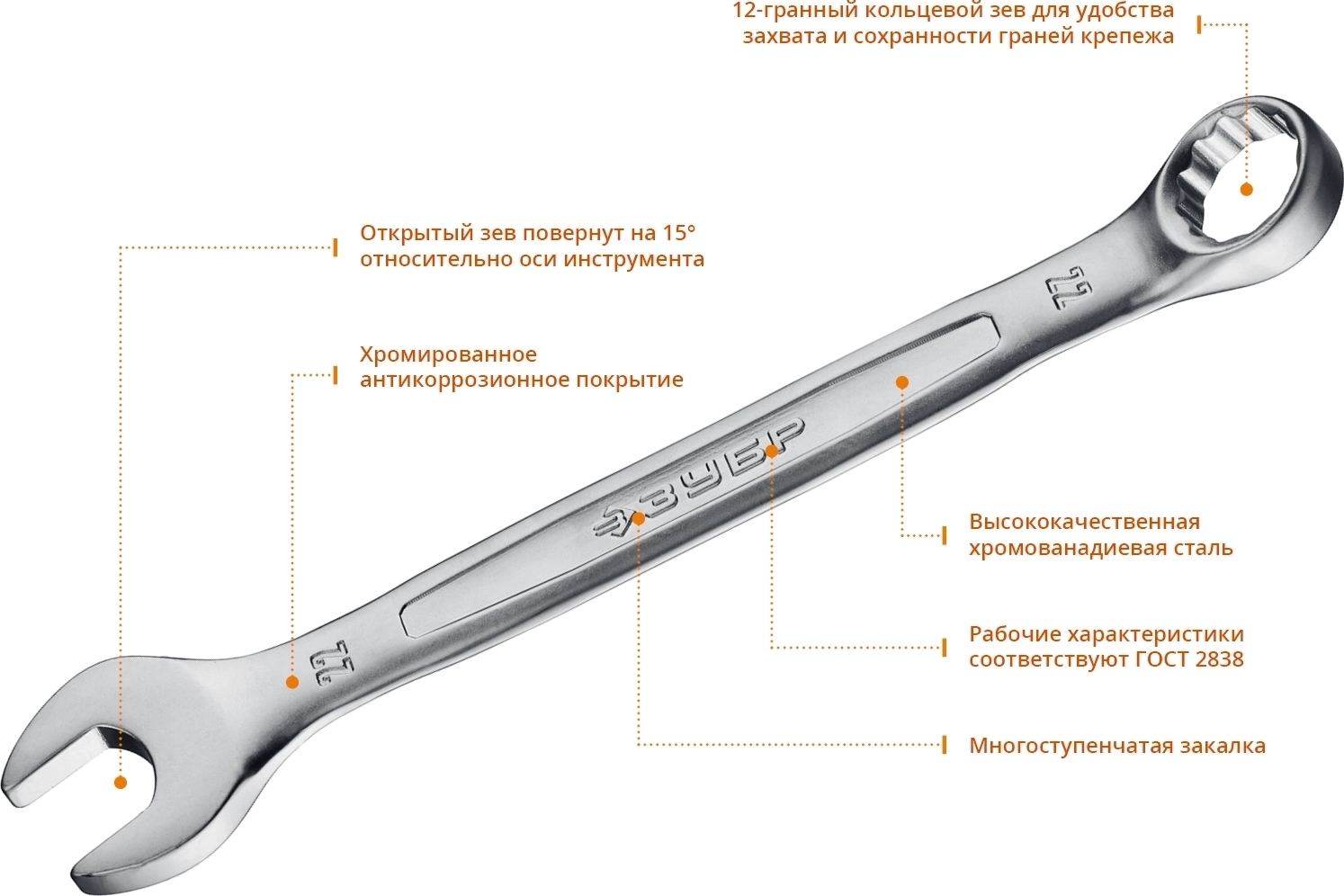 Комбинированный гаечный ключ ЗУБР 22 мм