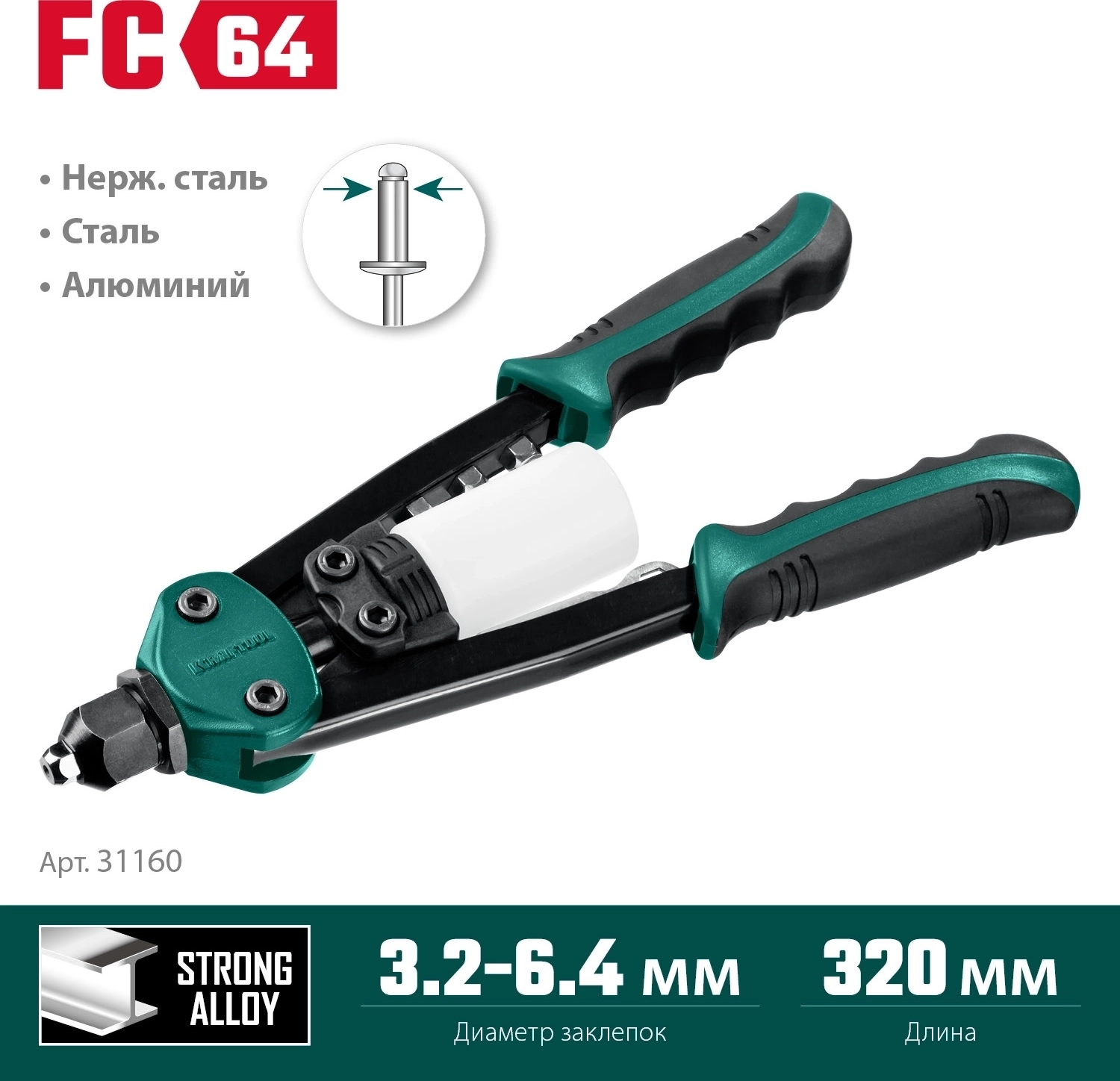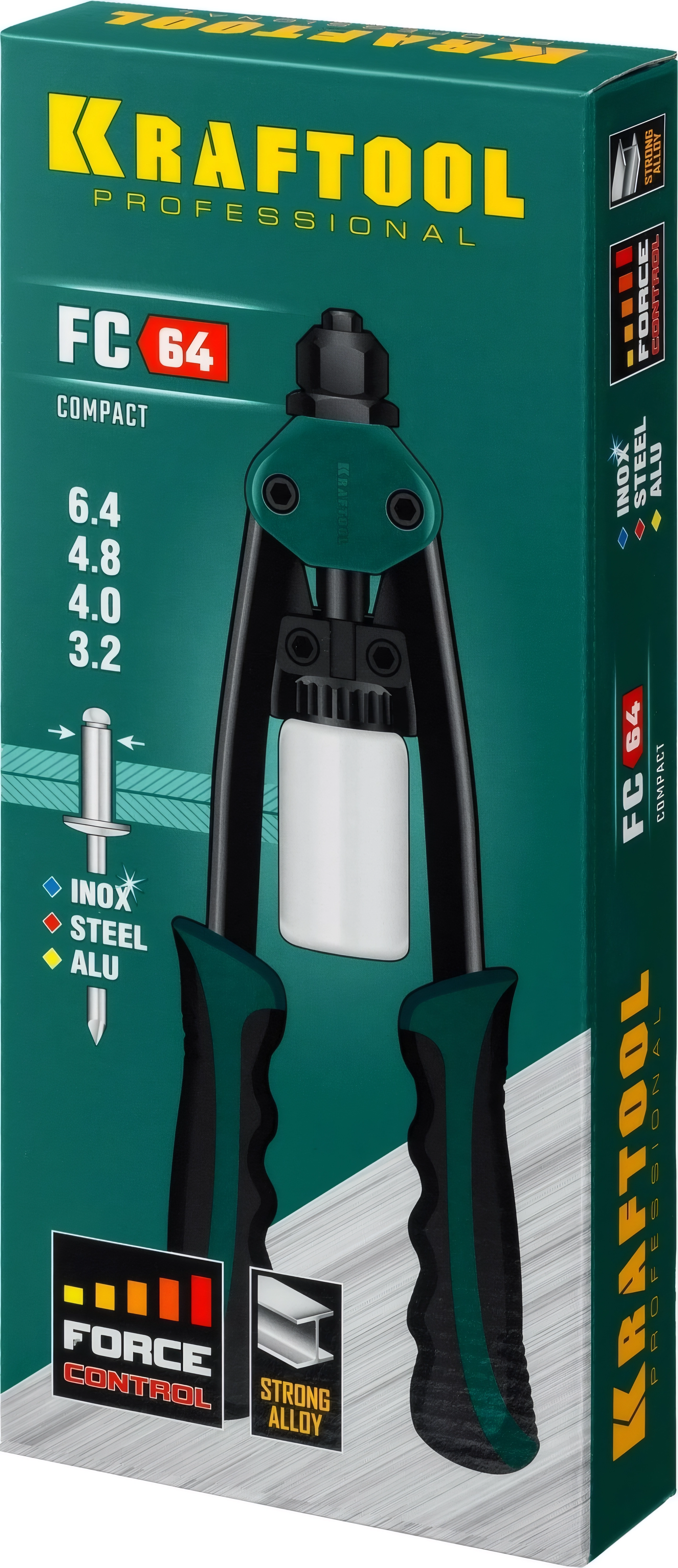 Компактный двуручный заклепочник KRAFTOOL FC-64, 3.2 - 6.4 мм, 320 мм, регулировка усилия