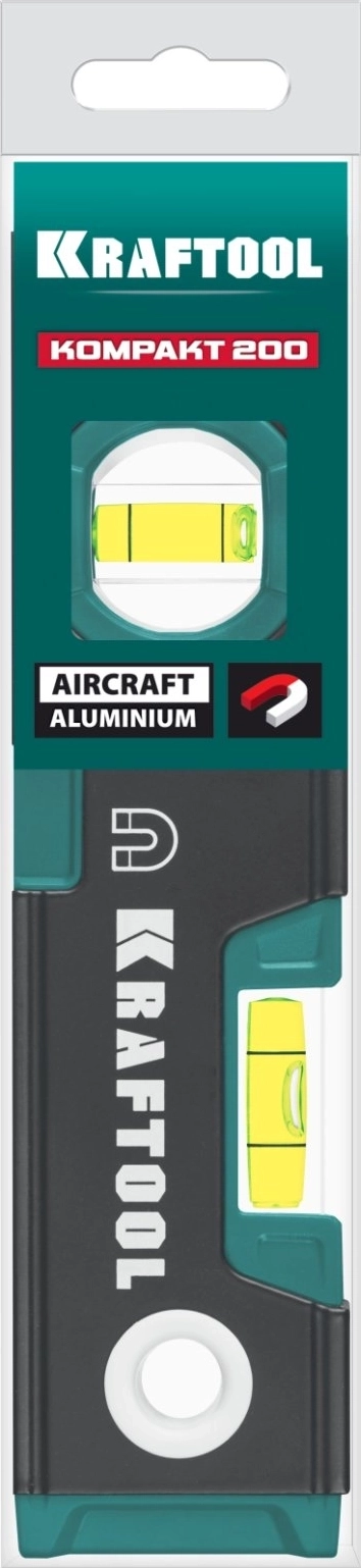 Компактный магнитный уровень KRAFTOOL KOMPAKT-200, 200 мм, усиленный профиль, с зеркальным глазком